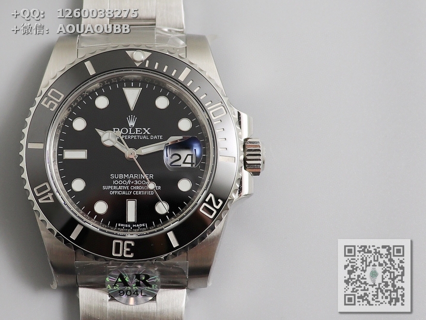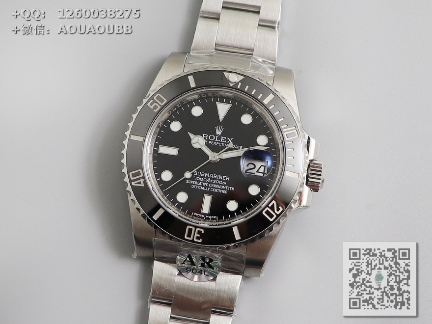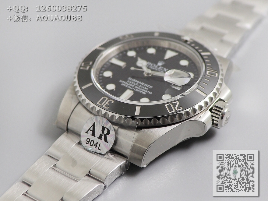 (注:AR 904钢潜航者系列的圈口从一开始就做岀了市面第一家与正品一致的八件套瘪压工艺.圈口从不用双面胶粘贴)