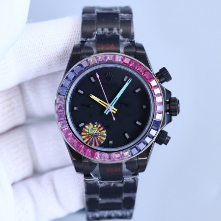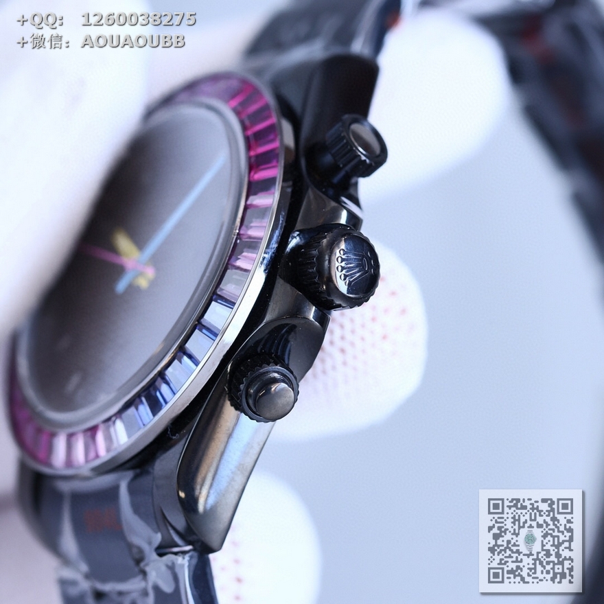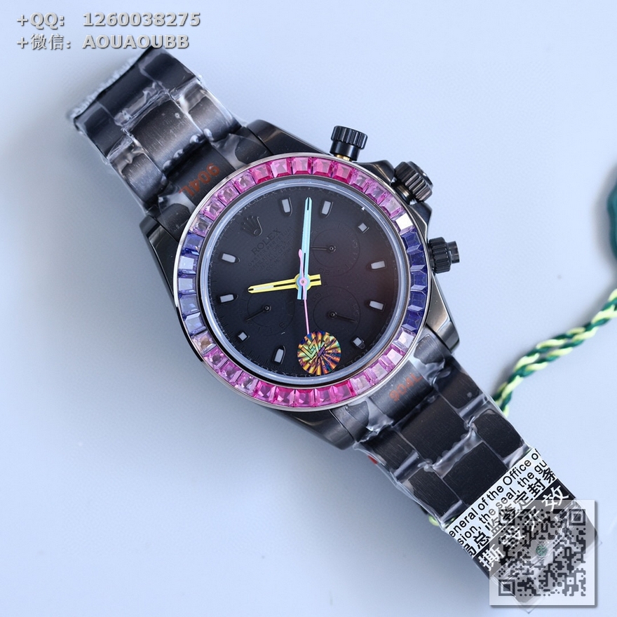 【产品介绍】Rolex最新第三代迪通拿可乐彩虹钻款!最新碳黑复刻版40mm高端品质实拍!全黑钢迪通拿!采用改良版最新真功能一档7750多功能机械机芯!可选配真皮表带或胶带或精钢表带!