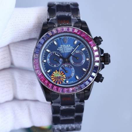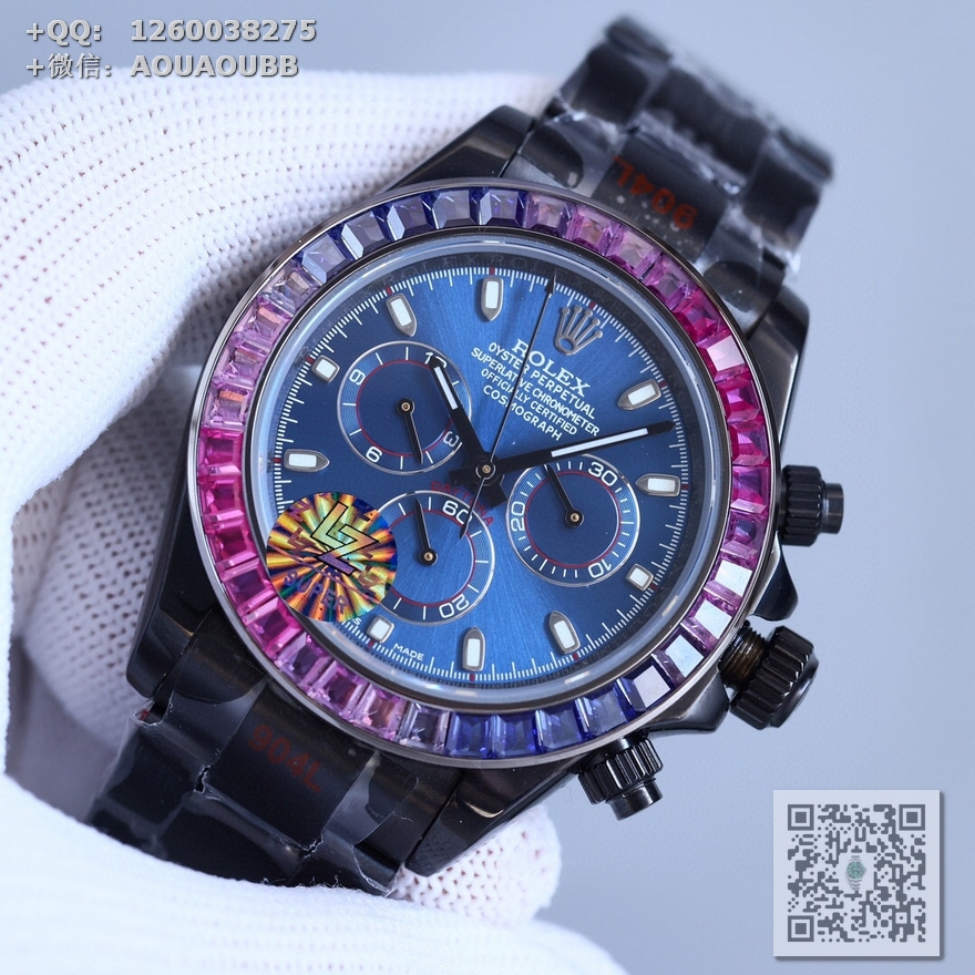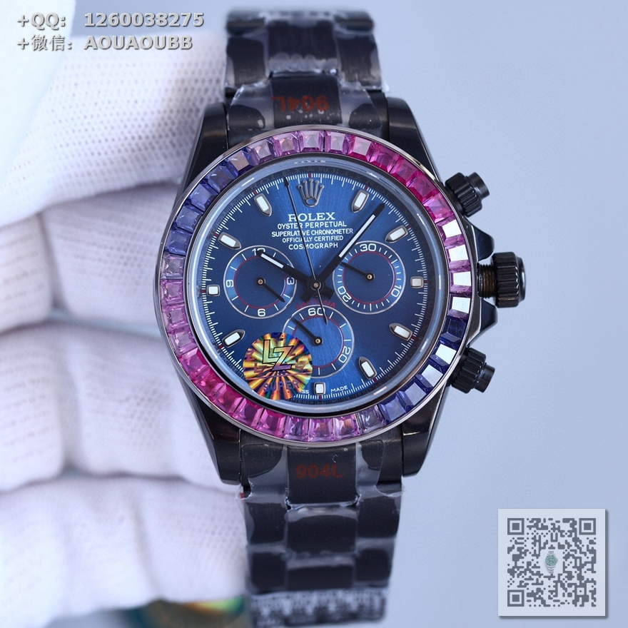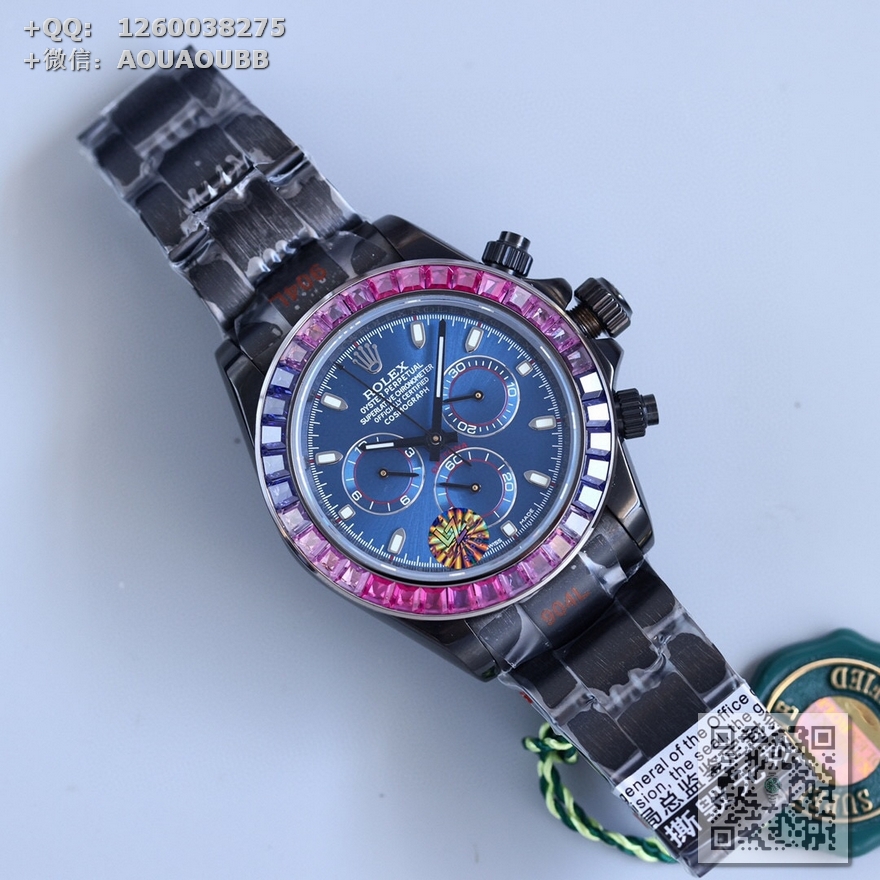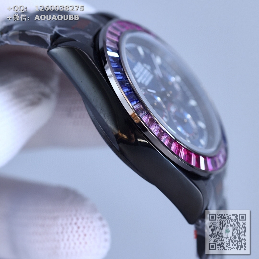 【产品介绍】Rolex最新第三代迪通拿可乐彩虹钻款!最新碳黑复刻版40mm高端品质实拍!全黑钢迪通拿!采用改良版最新真功能一档7750多功能机械机芯!可选配真皮表带或胶带或精钢表带!