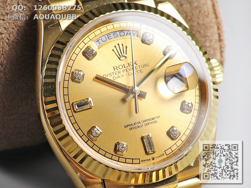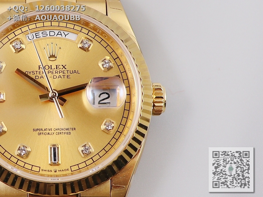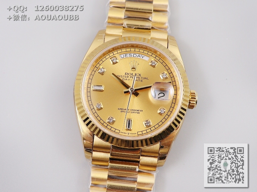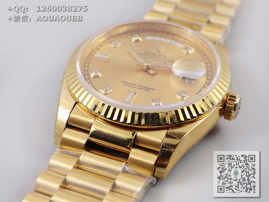 【产品介绍】EW劳力士星期日志型36终极版 3255自动机械机芯128238系列腕表,36毫米直径,研发耗时一年半,原版1比1开模。重点升级了以下几个要点:1、表壳直径与2019最新版3255型系列一致36毫米。2、表带头粒与原装一致、5件拼装、难度非常高,表带与表壳交错型无缝连结。3、把头皇冠处下方修改为与原版一致的两个圆点。4、表扣与原版一致里面加装了弹簧,字体大小工艺和原装一致。5、表壳侧面与原版一致增加二维码防伪、底盖有验货二维码。6、表壳与表带连接处的壳身刻有与原版一致的型号数字。7、表的内影圈刻上了与保修卡一致的产品流水数字,8、附全套原版套装配置包括(保修卡,说明书,型号条型码与正品一致)全套包装与正品一致(市面上真正的原装一比一星期日历型)