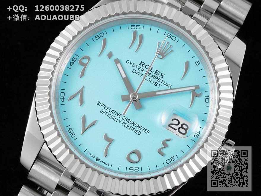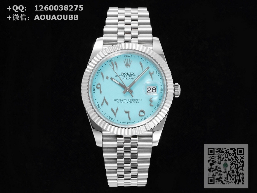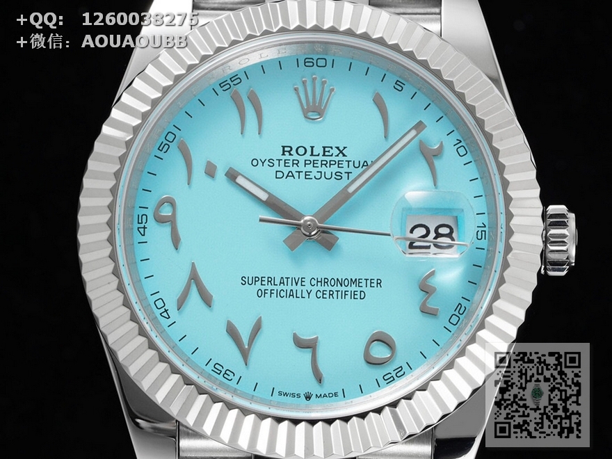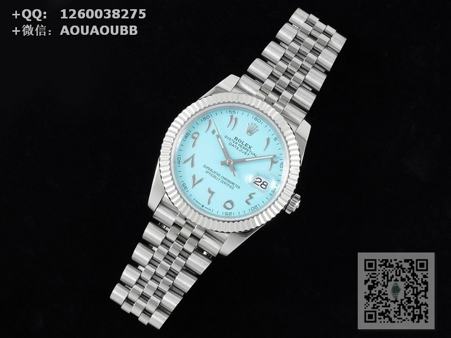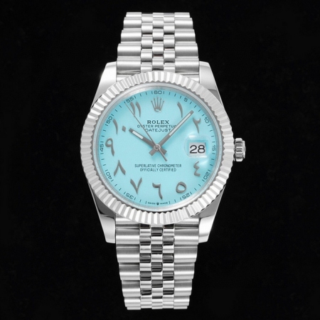 【表盘】独树一帜的中东数字刻度表盘,展现奢华与典雅风范。时分针上都覆有荧光填充,即使在较暗的环境下也能观察时间,增添了腕表的可读性。劳力士一贯使用的“水滴式”2.5倍日期放大装置,便利了对日期的观察,作为劳力士的特色之一的它也加深了腕表的品牌辨识度。