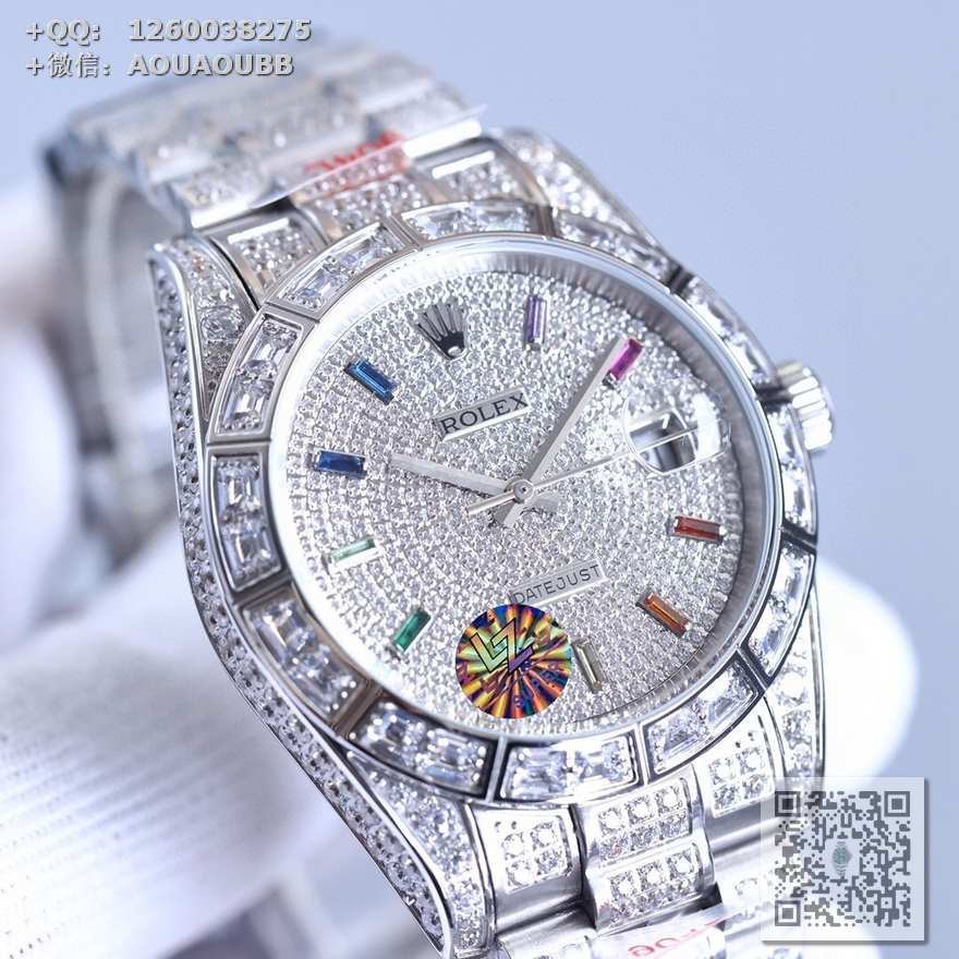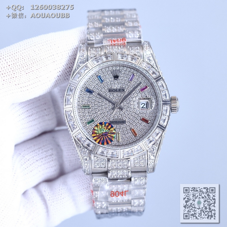 【产品介绍】高清实拍 奢华方钻日志满钻款!!镶嵌工艺大方钻圈口!采用最高版本真逼镶工艺!奢华款式!采用进口3135全自动机械机芯!劳力士奢华18k纳米技术!全满钻原装表带!2000+颗AAA锆石精心打造!认准镶嵌工艺非市面上贴钻普通工艺!!(非人为因素5年内掉钻免费补钻)使的灯光下闪耀效果更佳!送礼最佳!41mm原装尺寸,蓝宝石防刮花玻璃镜面,18k真空电镀永不易掉色,送礼最佳奢华推荐!