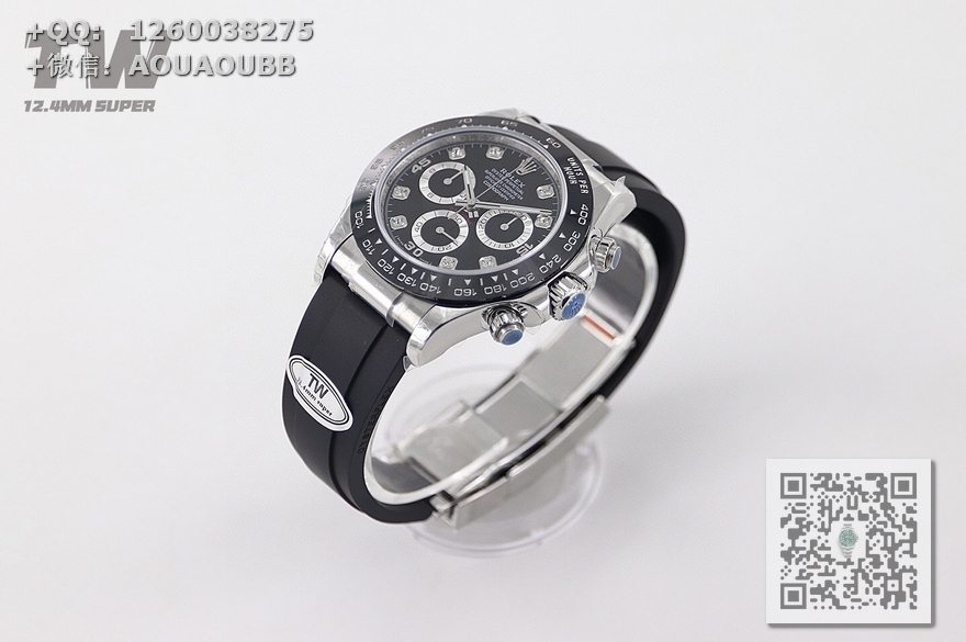 【产品介绍】TW V2横空出世、实现历史性突破!一比一还原劳力士宇宙计型迪通拿。挑战市面一切版本,TW历时3年研发成果,打磨出与正品数据一模一样壳套。️绝对的极致超薄12.4MM厚度(与官方正品12.4MM厚度丝毫无差 实测更薄)。️在提高稳定性的同时将独家定制7750机芯完美嵌入表壳,实现与正品通用壳套配件。️正品同款陶瓷圈口,通过PVD镀膜技术提供了最强质量保证。️字面与正品零色差,还原经典黑色和熊猫色表盘,刻度和指针深度打磨,无毛躁无瑕疵,拒绝一眼假。️优点:针都采用超强夜光,字面钉弧度跟原装一致,陶瓷圈底部刻有logo。 ️(陶瓷圈口字体与原装一致)镜面玻璃凸起是迪通拿的一特点。️胶带款4脚白金印 头粒对准原装可拆卸 市面的一眼假 原装可拆卸头粒。TW与原装一致,表带-壳套真正的采用904L精钢)。TW年度精品——真正意义上的最真、最强宇宙计型迪通拿!!!