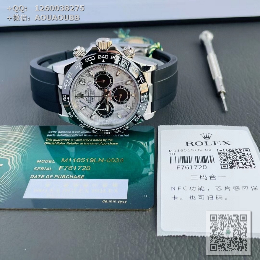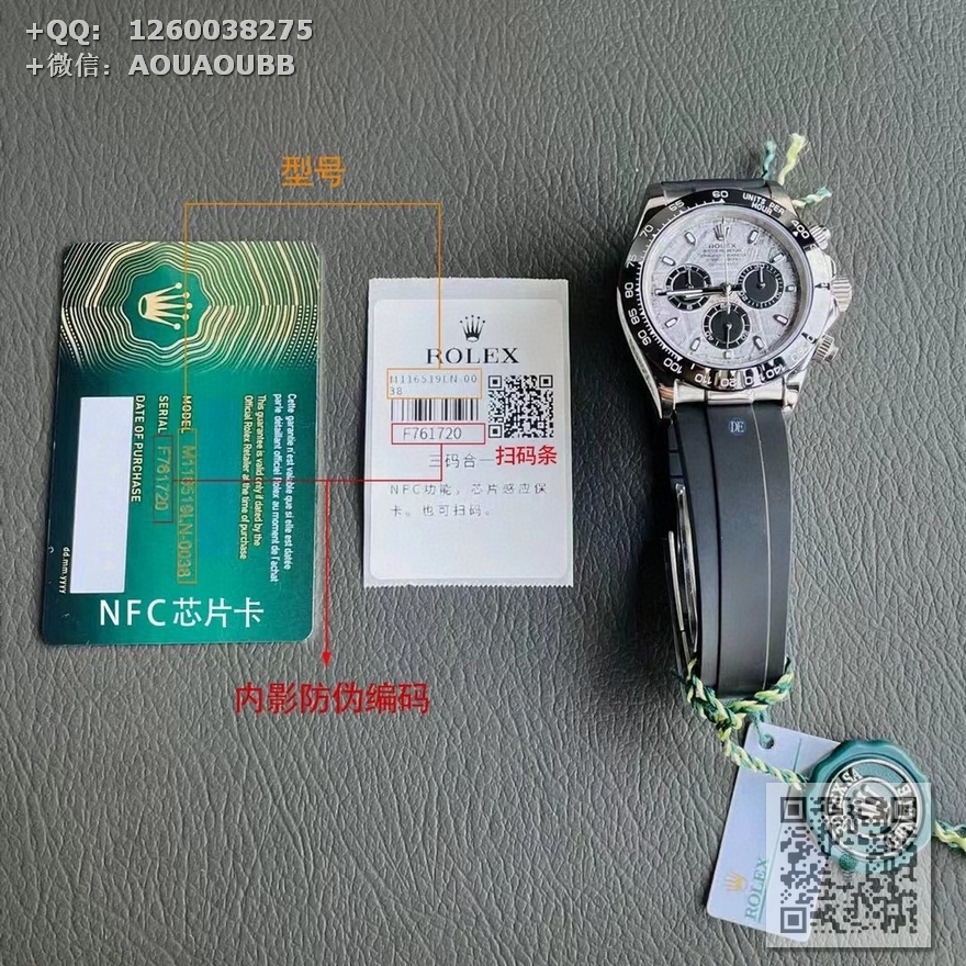 【产品介绍】AR迪通拿一表一码 NFC 全新防伪芯片感应保卡市场最低价,劳力士ROLEX宇宙计型迪通拿40mm 装载极致精准甲板机4130机芯藉恒动摆陀作双向上链,抗刮损蓝宝水晶镜面,316L精钢表壳铸造以及固定的外圈连计速刻度;中央时、分及计时秒;小秒设于6点位置,30分钟和12小时计时盘分别设于3点和9点位置;蚝式保险摺扣配5毫米易调链节伸展系统;原装保护胶罩,可检验圈口的外径尺寸是否与原装一致。超级复刻