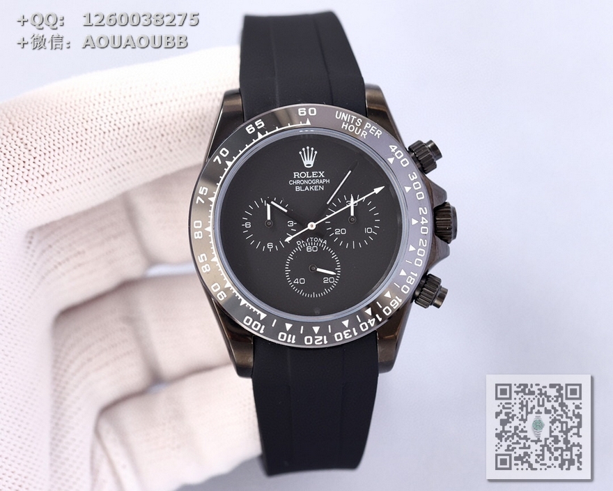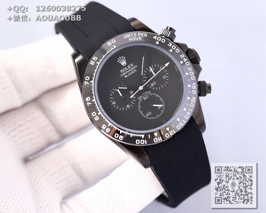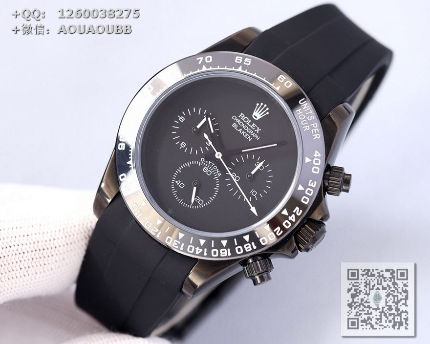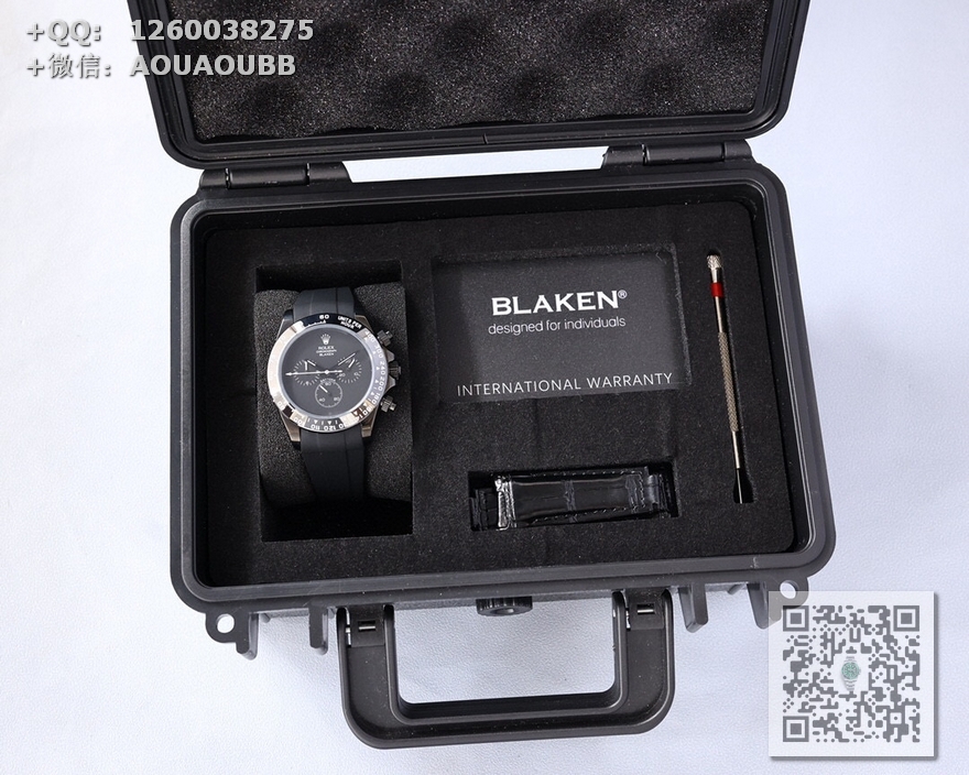 【产品介绍】 最新BLAKEN碳黑迪劳力士!全黑黑精钢胶带款!机芯改良版最新一代一档7750多功能机械机芯!40mm直径!出厂配BLAKEN发烧改装收纳箱工具以及价值380元的表带一副!!