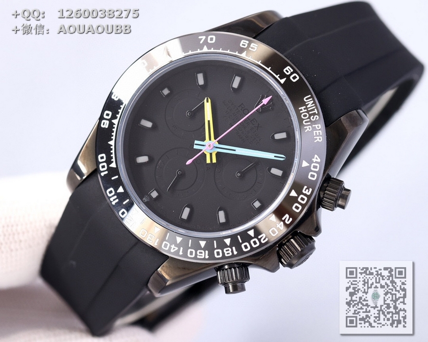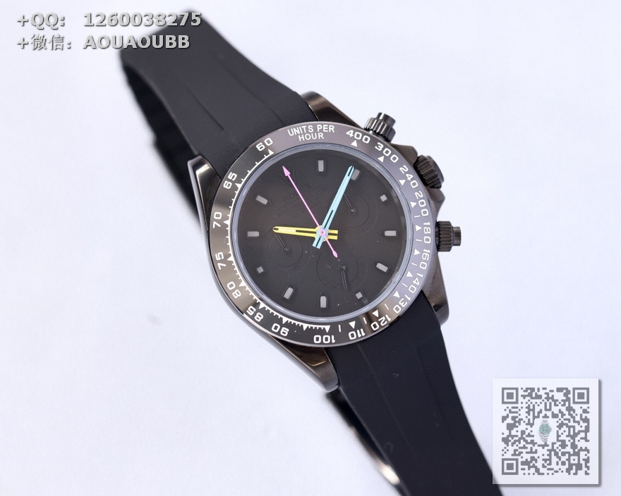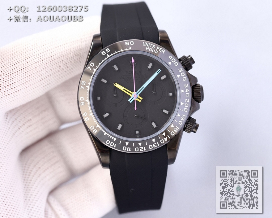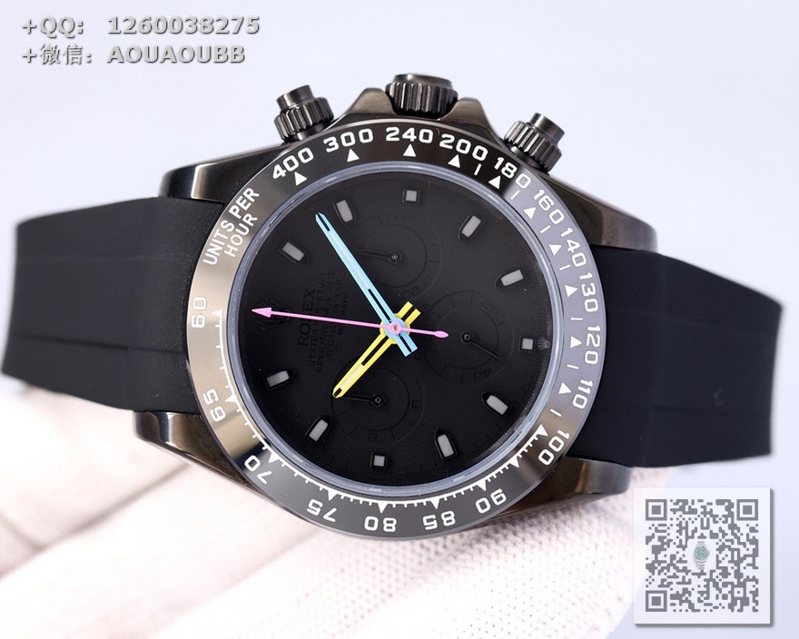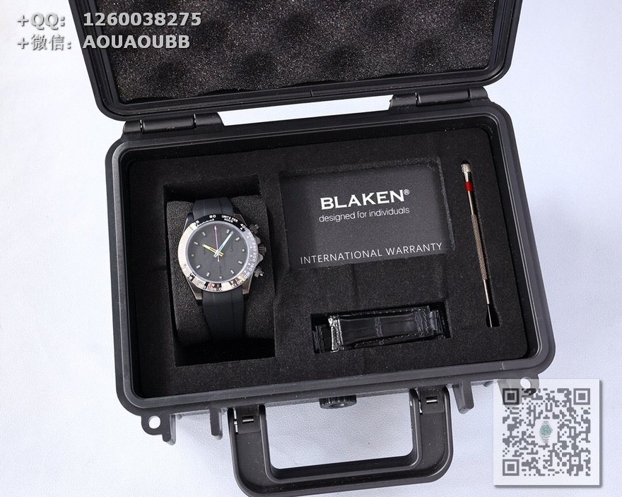 【产品介绍】 最新BLAKEN碳黑迪劳力士!全黑黑精钢胶带款!机芯改良版最新一代一档7750多功能机械机芯!40mm直径!出厂配BLAKEN发烧改装收纳箱工具以及价值380元的表带一副!!