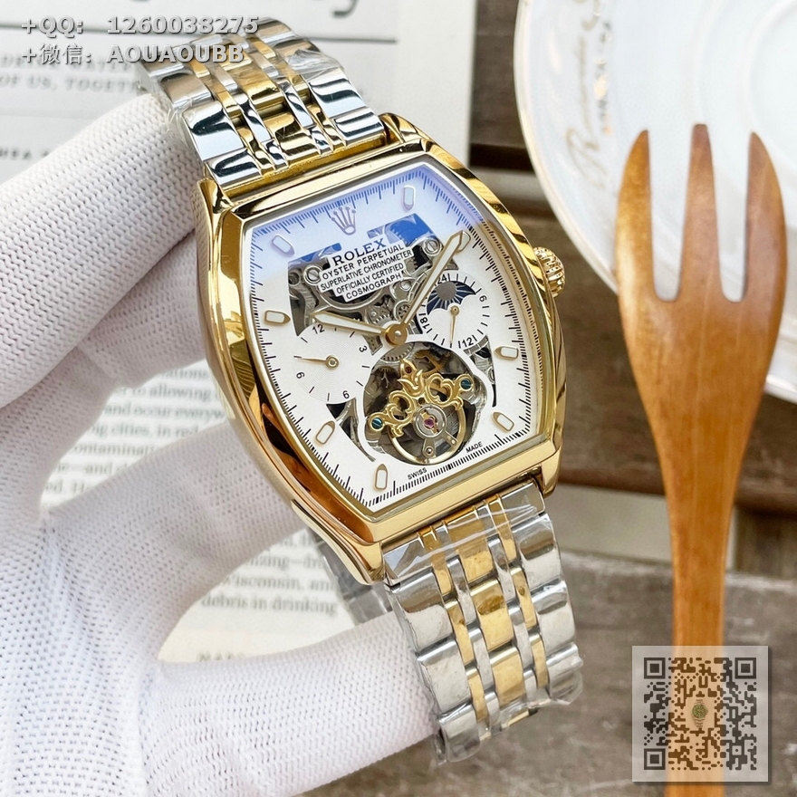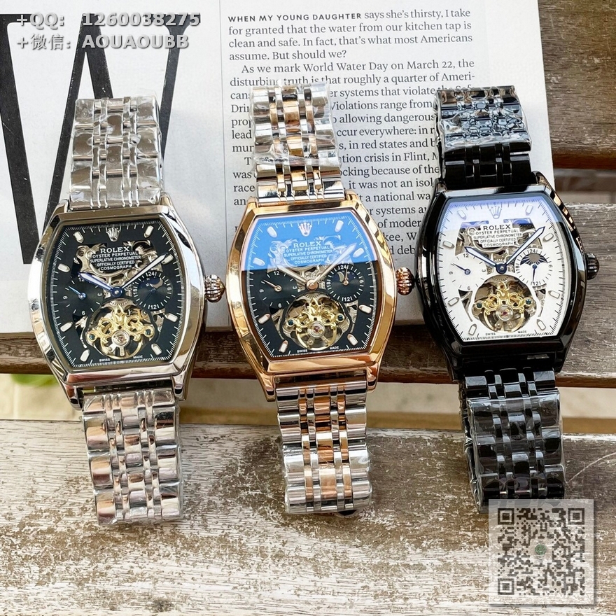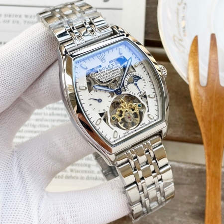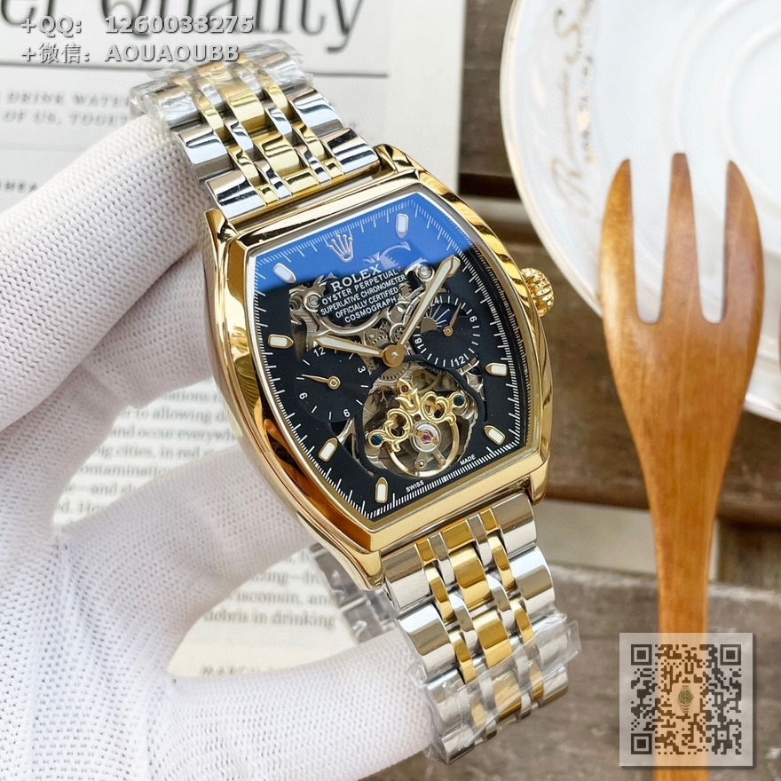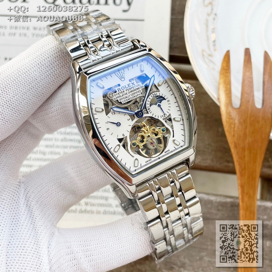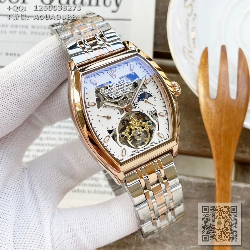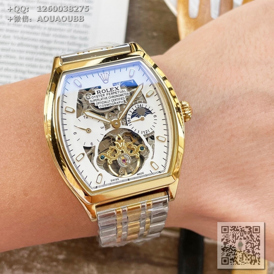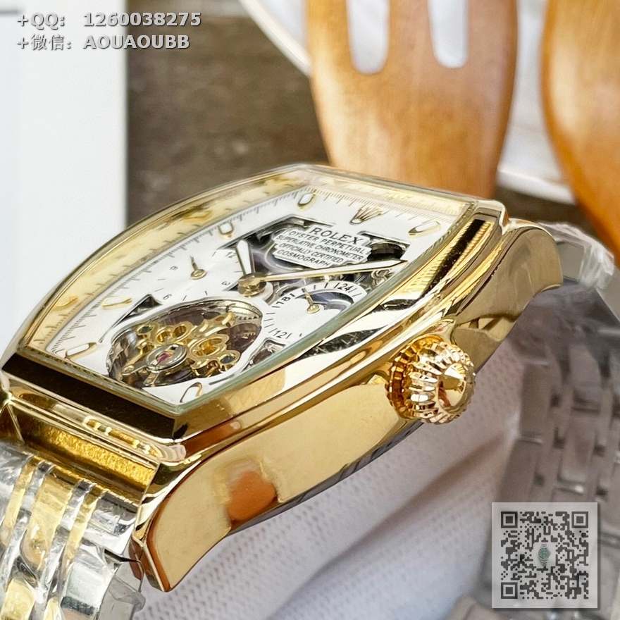 劳力士酒桶型系列镂空飞轮月相男士全自动机械腕表