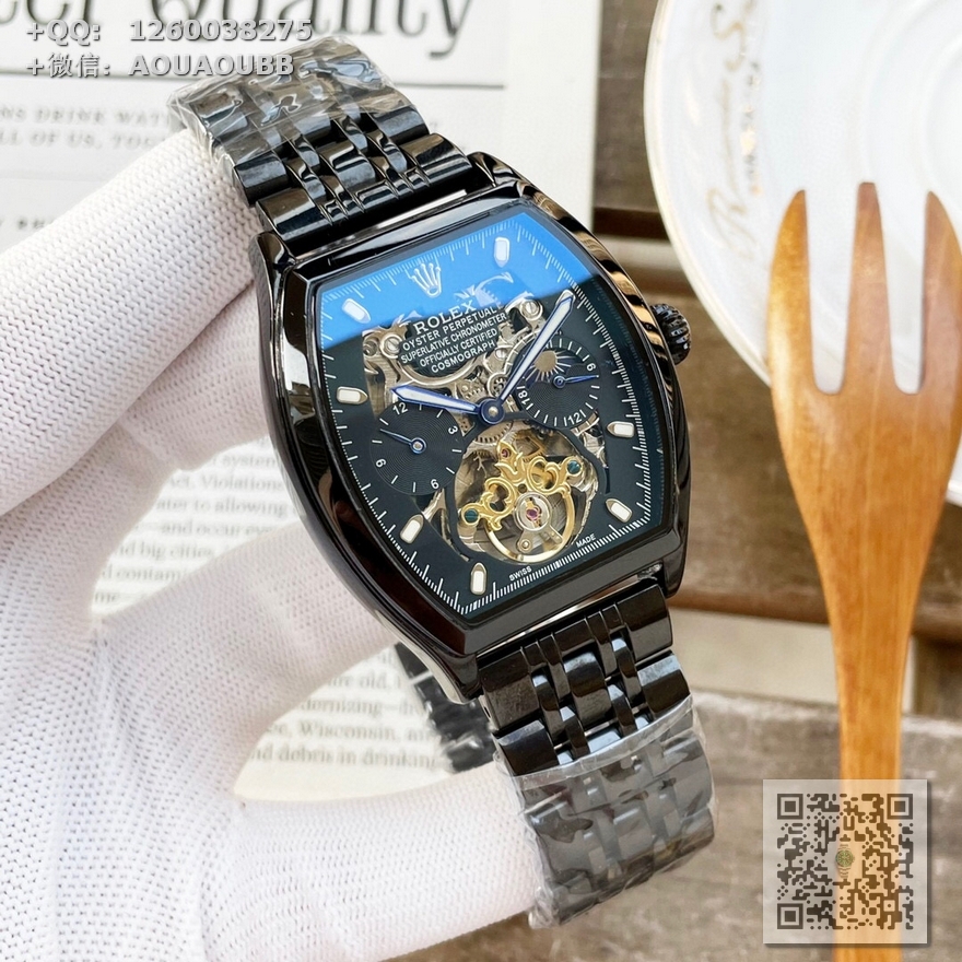 【产品介绍】劳力士酒桶型系列镂空飞轮月相男士全自动机械腕表