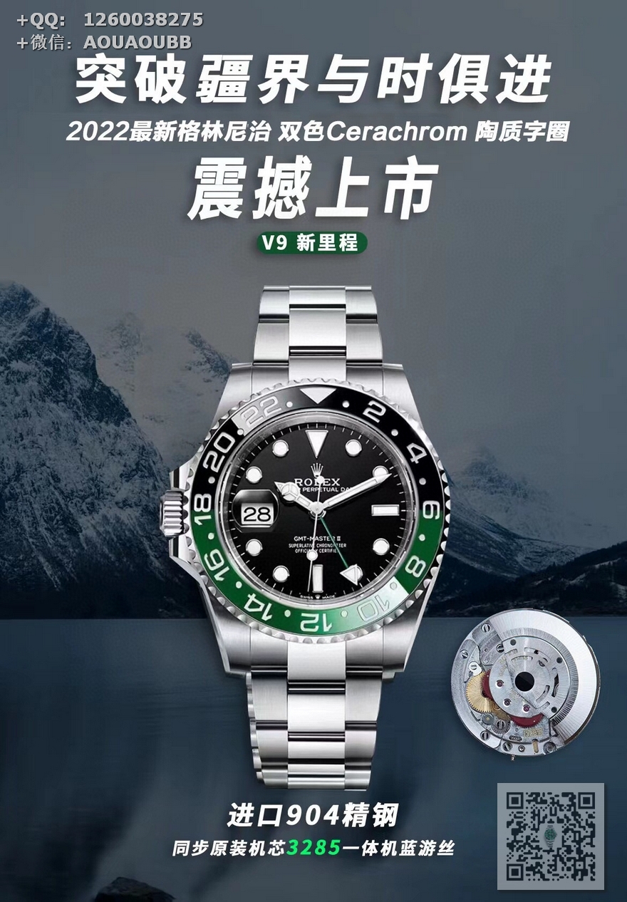 【产品介绍】 V9厂“新里程”突破疆界与时具进 格林尼治GMT 全系列 CIean厂陶瓷圈口 震撼上市 钢材采用正宗的进口904L原材料锻造打磨等工序而成,坚持不以普通钢材鱼目混珠的承诺,同步原装机芯3285一体机蓝游丝,体现在于如下:1:和原版一样的GMT双时区表针在底部时针上面的第二层,由下到上的顺序为:时针-双时区针-分钟-秒钟。2:和原版同样通过调试时针快跳调整日历的功能。