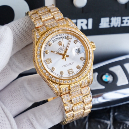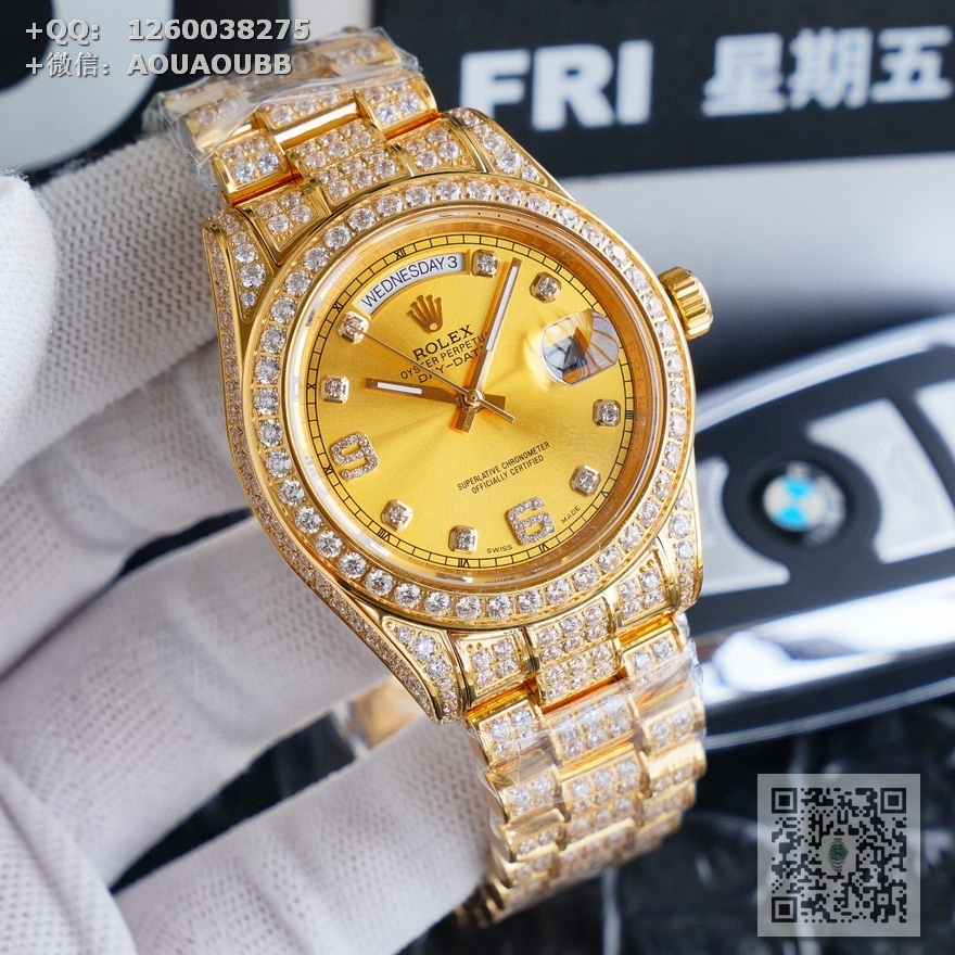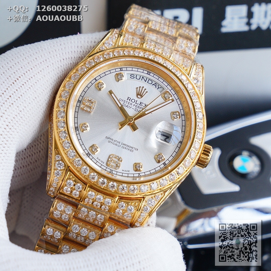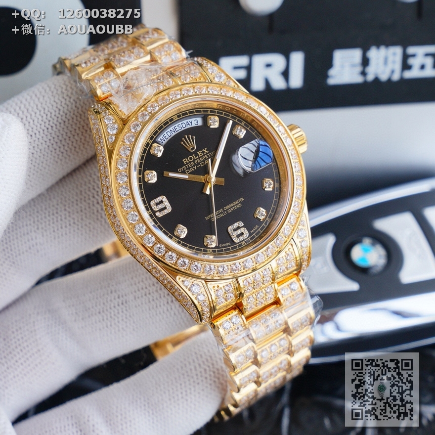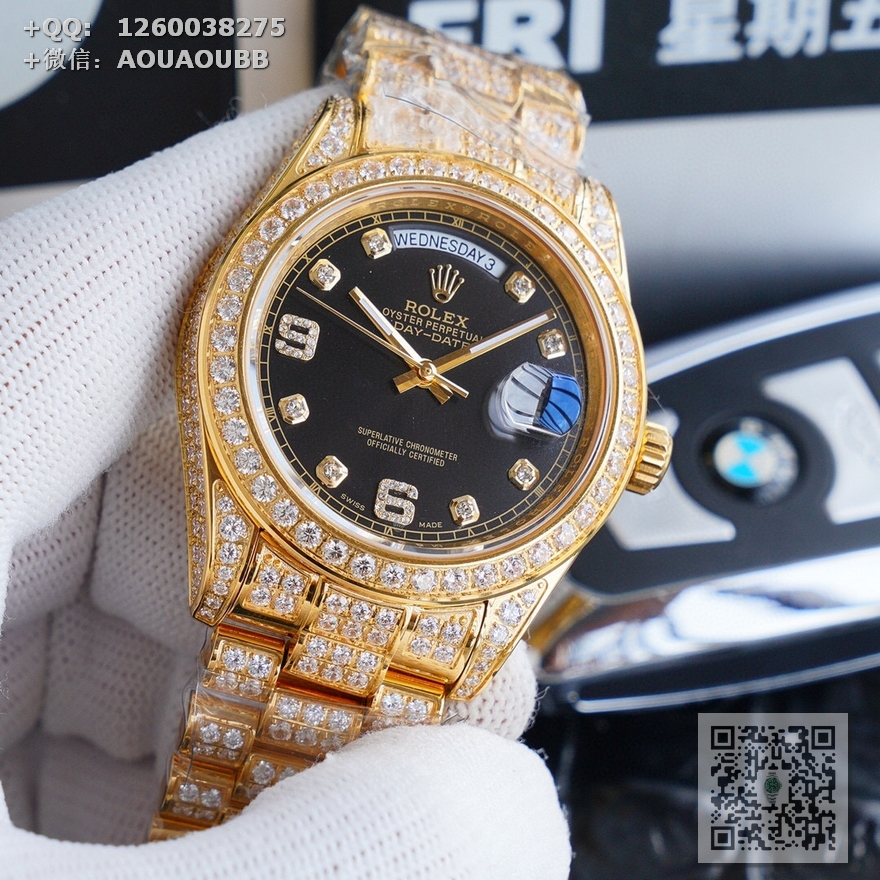 【产品介绍】V6最高版本推出劳力士Rolex日志型星期日历型️天星经典款系列,直径40mm,厚度12mm【机芯】全自动机械表原装进口3255机芯,所有机芯出厂均严格调试确保走时精准,性能稳定,零返修【表盘字面】采用顶级施华洛世奇美钻,手工镶嵌工艺而成精益求精理念设计【表壳表扣】顶级材质的904L精钢表壳搭配904L精钢表带/原装保险扣,️表扣内侧抛光腐蚀工艺钢印!️表带采用904L蚝式钢打造,蚝式表带由两排宽大、平整的表链节组成,极其坚固,表链全身整齐镶满最顶级施华洛世奇美钻,效果惊艳,光华四射【表镜】抗刮损蓝宝石水晶玻璃,防反光凸透式放大日历窗,纯水刀切割!采用最顶级的施华洛世奇美钻,历经数日的手工镶嵌而成,永不掉钻的承诺!每个极致的细节都是顶级V6工厂匠心开发诚意之作 表里如一 独具匠心!欢迎各路表友品鉴!️请认准独家品质