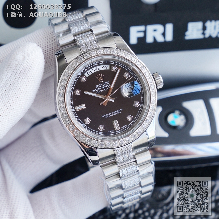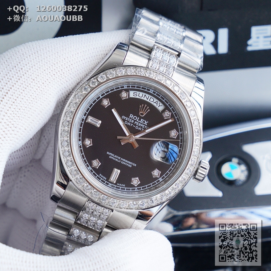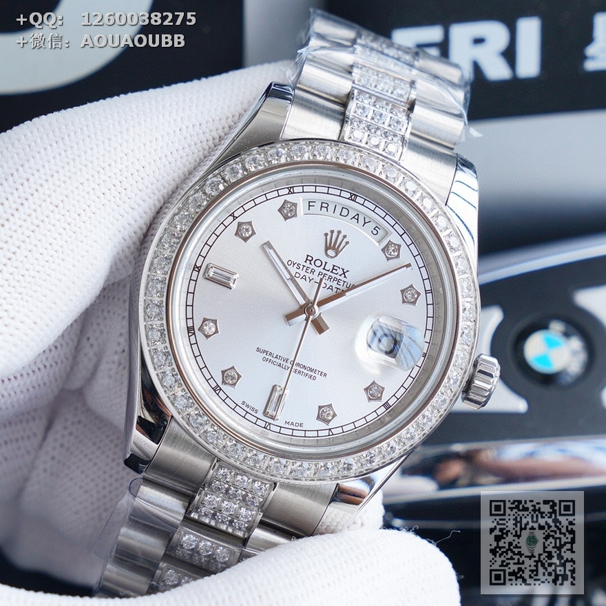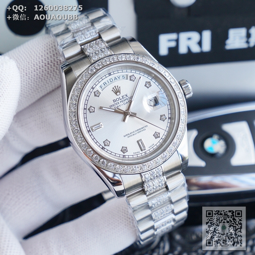【产品介绍】V6最高版本推出劳力士Rolex日志型星期日历型️天星经典款系列,直径40mm,厚度12mm【机芯】全自动机械表原装进口3255机芯,所有机芯出厂均严格调试确保走时精准,性能稳定,零返修【表盘字面】采用顶级施华洛世奇美钻,手工镶嵌工艺而成精益求精理念设计【表壳表扣】顶级材质的904L精钢表壳搭配904L精钢表带/原装保险扣,️表扣内侧抛光腐蚀工艺钢印!️表带采用904L蚝式钢打造,蚝式表带由两排宽大、平整的表链节组成,极其坚固,表链全身整齐镶满最顶级施华洛世奇美钻,效果惊艳,光华四射【表镜】抗刮损蓝宝石水晶玻璃,防反光凸透式放大日历窗,纯水刀切割!采用最顶级的施华洛世奇美钻,历经数日的手工镶嵌而成,永不掉钻的承诺!每个极致的细节都是顶级V6工厂匠心开发诚意之作 表里如一 独具匠心!欢迎各路表友品鉴!️请认准独家品质