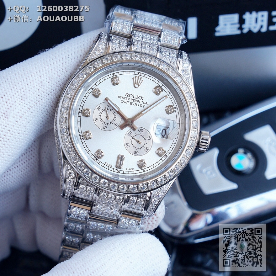 【产品介绍】TW顶级V2升级版 推出劳力士Rolex日志型星期日历型️天星经典款系列,直径41mm,厚度12mm【机芯】全自动机械表原装进口机芯,所有机芯出厂均严格调试确保走时精准,性能稳定,零返修【表盘字面】采用顶级施华洛世奇美钻,手工镶嵌工艺而成精益求精理念设计【表盘功能】️字位24小时计时功能️字位跑秒计时功能【表壳表扣】顶级材质的904L精钢表壳搭配904L精钢表带/原装保险扣,️表扣内侧抛光腐蚀工艺钢印!️表带采用904L蚝式钢打造,蚝式表带由两排宽大、平整的表链节组成,极其坚固,表链全身整齐镶满最顶级施华洛世奇美钻,效果惊艳,光华四射【表镜】抗刮损蓝宝石水晶玻璃,防反光凸透式放大日历窗,纯水刀切割!采用最顶级的施华洛世奇美钻,历经数日的手工镶嵌而成,永不掉钻的承诺!每个极致的细节都是顶级TW工厂匠心开发ZL诚意之作 表里如一 独具匠心!欢迎各路表友品鉴!️请认准独家品质