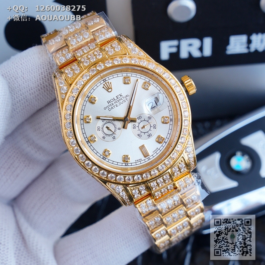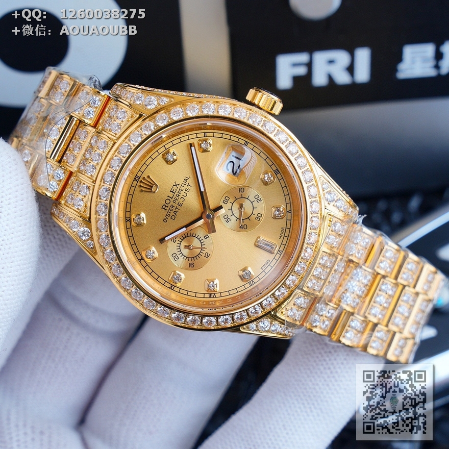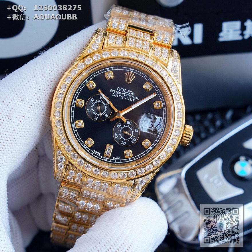 【产品介绍】TW顶级V2升级版 推出劳力士Rolex日志型星期日历型️天星经典款系列,直径41mm,厚度12mm【机芯】全自动机械表原装进口机芯,所有机芯出厂均严格调试确保走时精准,性能稳定,零返修【表盘字面】采用顶级施华洛世奇美钻,手工镶嵌工艺而成精益求精理念设计【表盘功能】️字位24小时计时功能️字位跑秒计时功能【表壳表扣】顶级材质的904L精钢表壳搭配904L精钢表带/原装保险扣,️表扣内侧抛光腐蚀工艺钢印!️表带采用904L蚝式钢打造,蚝式表带由两排宽大、平整的表链节组成,极其坚固,表链全身整齐镶满最顶级施华洛世奇美钻,效果惊艳,光华四射【表镜】抗刮损蓝宝石水晶玻璃,防反光凸透式放大日历窗,纯水刀切割!采用最顶级的施华洛世奇美钻,历经数日的手工镶嵌而成,永不掉钻的承诺!每个极致的细节都是顶级TW工厂匠心开发ZL诚意之作 表里如一 独具匠心!欢迎各路表友品鉴!️请认准独家品质