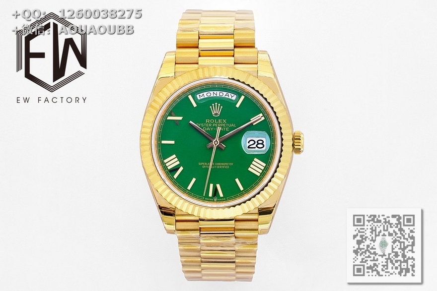 【产品介绍】EW厂V2劳力士星期日志型 3255自动机械机芯128238系列腕表,40毫米直径,研发耗时一年半,原版1比1开模。重点升级了以下几个要点:1、表壳直径与2019最新版3255型系列一致40毫米。2、表带头粒与原装一致、5件拼装、难度非常高,表带与表壳交错型无缝连结。3、把头皇冠处下方修改为与原版一致的两个圆点。4、表扣与原版一致里面加装了弹簧,字体大小工艺和原装一致。5、表壳侧面与原版一致增加二维码防伪、底盖有验货二维码。6、表壳与表带连接处的壳身刻有与原版一致的型号数字。7、表的内影圈刻上了与保修卡一致的产品流水数字,8、附全套原版套装配置包括(保修卡,说明书,型号条型码与正品一致)全套包装与正品一致(市面上真正的原装一比一星期日历型)