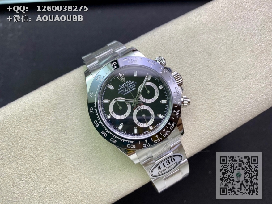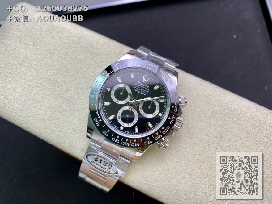 【产品介绍】Clean 熊猫迪  完美超越 壳带 盘针。亮点是机芯。同款4130机芯。clean厂/c厂迪通拿使用904L材料 4130机芯/n厂同款机芯 ar表带 clean表盘/*死白色*唯一对版clean陶瓷圈buff工厂指针厚度12.2-12.3之间 本次手表的特点 玻璃和表壳衔接的地方 完全透明,看不到任何白边 玻璃边缘弧形跟原装一致 玻璃凸出陶瓷圈高度 跟原装一样---------陶瓷圈使用clean 字体更加立体圆润 陶瓷圈边缘有轻微圆角---------表盘 唯一一个使用 *死白色*其他都会发黄/发红后续会放出各大代用字面对比/真假对比字钉有圆角打磨 夜光填充高度适中 亮度也ok字体印刷立体 黑色小圈尺寸与原装一致 表带 和表壳衔接的地方 顶部 无缝衔接 尖角那里 表带/表壳 配合 无缝隙 表带/壳 头粒 顶部与表壳持平 尾部略微凹陷 表带/壳 头粒 底部与壳  在头部 呈凹陷状 与原装一致