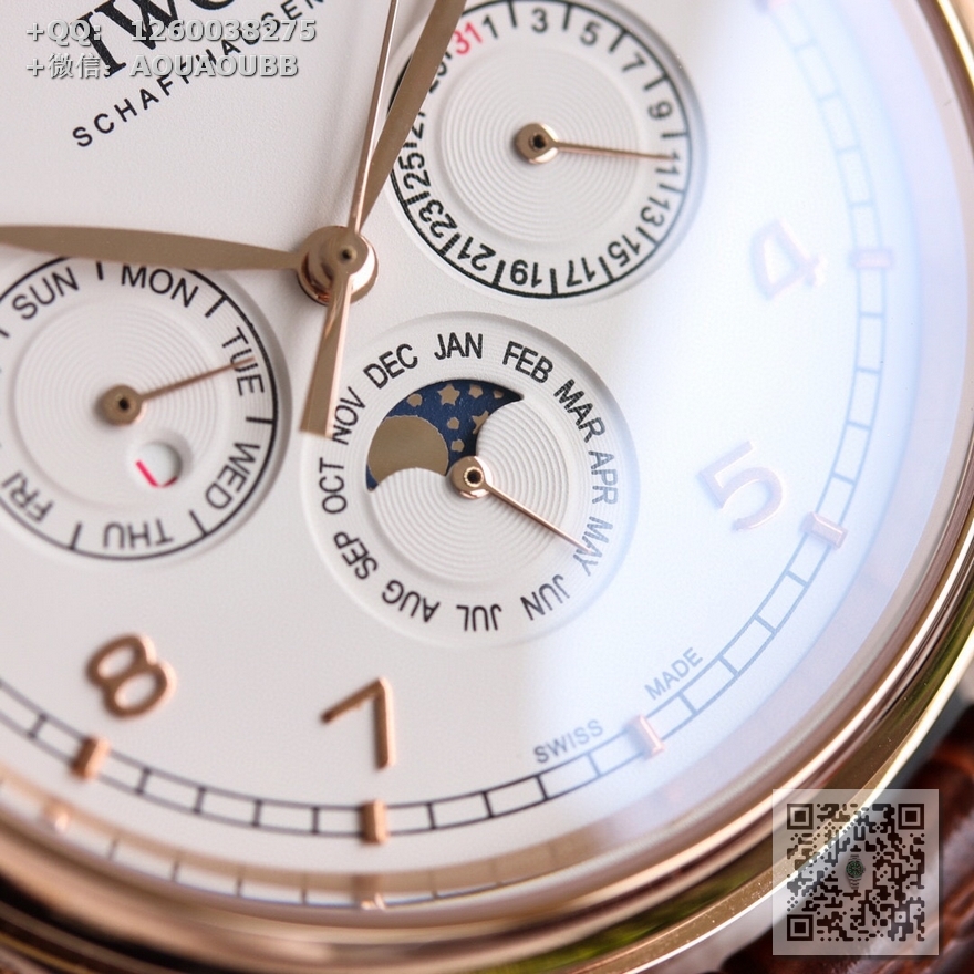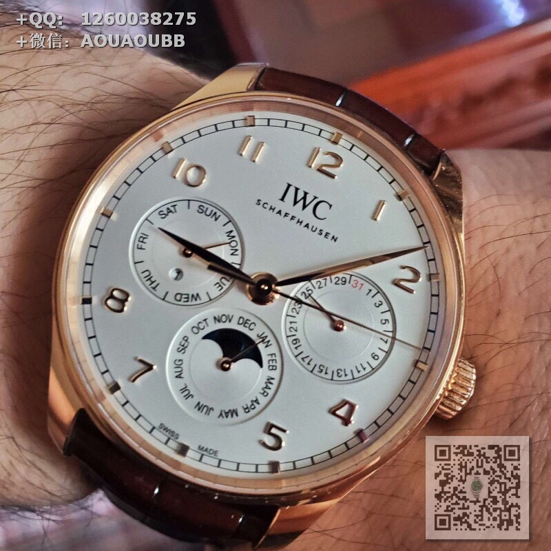 【产品介绍】YL万国葡萄牙系列真万年历,复刻界第一支万年历万国,采用进口大精工作为基础机芯升级为82650机芯副本,不但实现了万年历大部分功能而且走时稳定,返修率极低,这是复刻市场少有的耐操性复杂功能腕表。