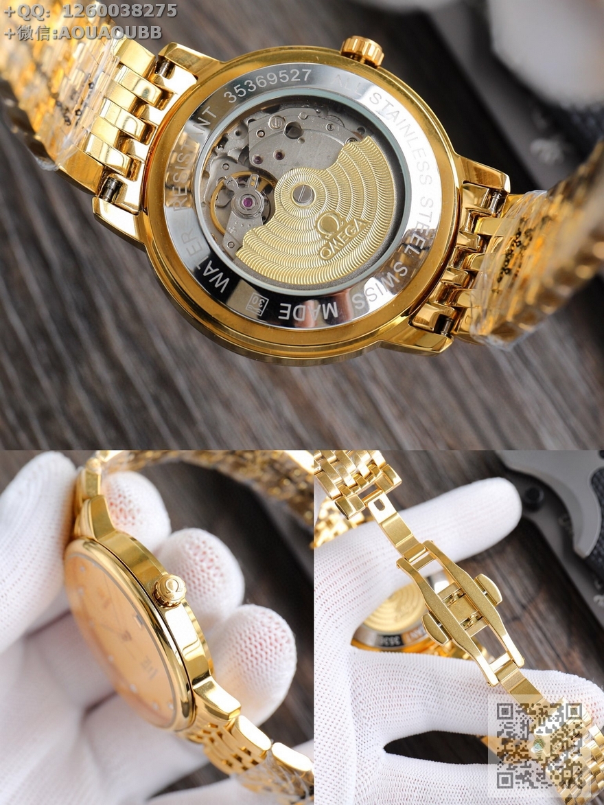 【品牌】欧米茄【产品介绍】欧米茄omega精品男士腕表,经典大三针设计,尊贵大气,绅士风范,卓越品质,热卖全城。采用进口全自动机械机芯(零返修),顶级316精钢表壳,进口小牛皮表带原装针扣,蓝宝石镜面,尺寸40mm【款式】男款【尺寸】直径40mm【表带】精钢表带【镜面】蓝宝石镜面【机芯】原装进口8217机芯【防水】50米防水【配件】原装盒,说明书,质保卡,吊牌,香港机打发票【品质检测】保证所有手表实物拍摄,所见即所得 , 手表发货前都会有严格检查测试,确保您收到的手表无质量问题