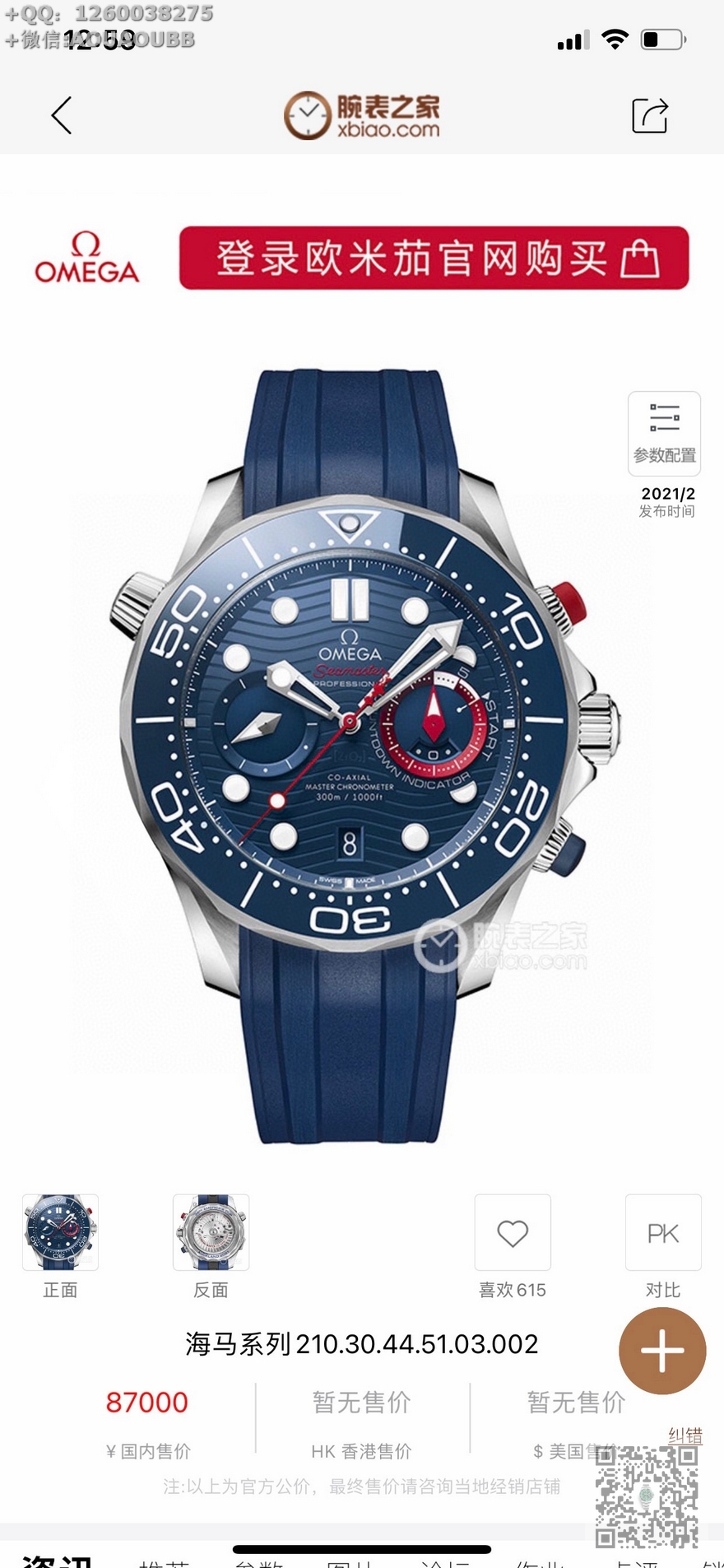 表壳拉身砂细腻洁白光亮斜边抛弧光度倒角与正一品致、904精表钢壳44毫米 ,天进然口橡胶表带。表盘最引人注意的视觉元素是中央计时秒针——尾部装饰美洲杯大赛的「银水罐」奖杯。3点是计时副表盘,「赛前5分钟倒计时」以醒目的白色突出,菱形计时分针的灵感来自帆船的船壳,小时读数则显示在下方扇形窗口里。表盘6点为日历窗,9点是小秒针。搭载 OMEGA 9900 自动上链机芯,摆频28800vph,配备导柱轮结构和同轴擒纵,提供60小时动力储备。精钢表底边缘刻有蓝色「36th America’s Cup」及「Auckland 2021」纪念铭文。