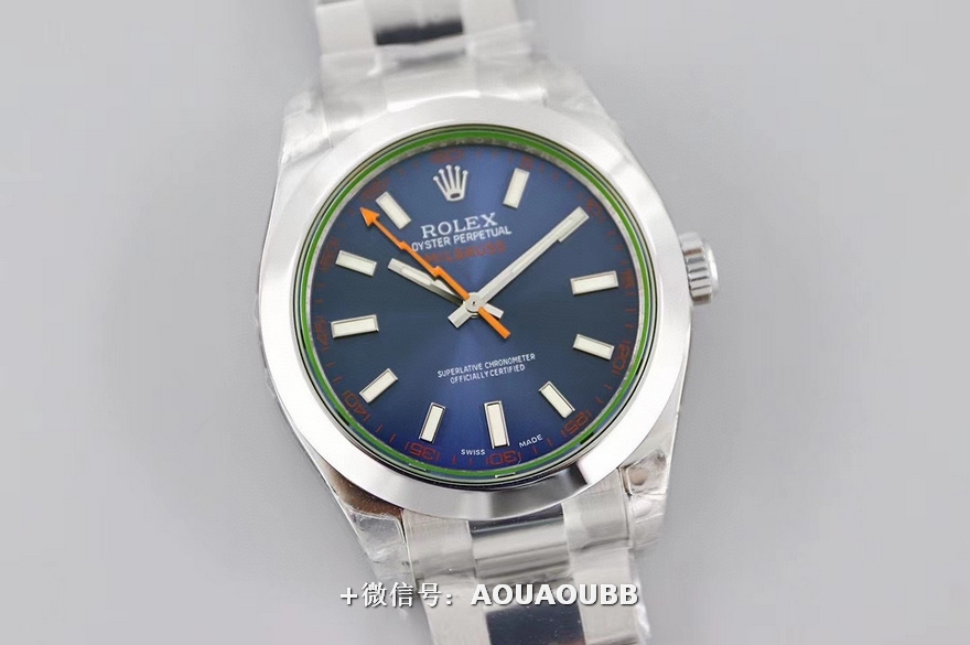 【品牌】劳力士【款式】男款【产品介绍】AR力作(最高版本1:1复刻)——Rolex劳力士MILGAUSS系列闪电秒系列.搭载瑞士ETA2824自动上链机械机芯,直径40厚度11mm.采用与原装一致的904精钢,表带做工细腻完美.镀蓝膜水晶蓝宝石玻璃镜面.蚝式折叠扣.【尺寸】直径40mm【表带】升级904L精钢表带【镜面】蓝宝石镜面【机芯】瑞士ETA2824机芯【防水】100米防水【配件】原装盒,说明书,质保卡,吊牌,香港机打发票【品质检测】保证所有手表实物拍摄,所见即所得 , 手表发货前都会有严格检查测试,确保您收到的手表无质量问题