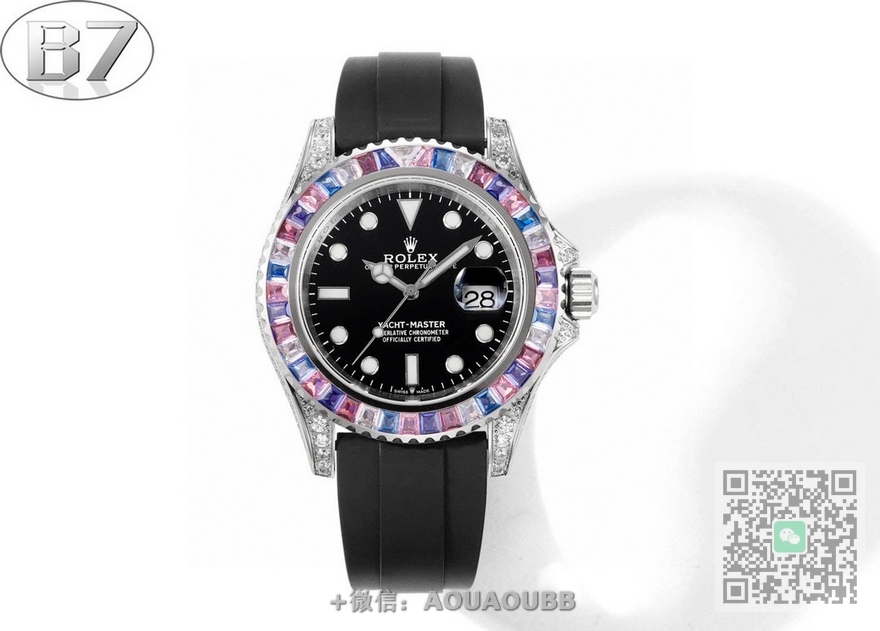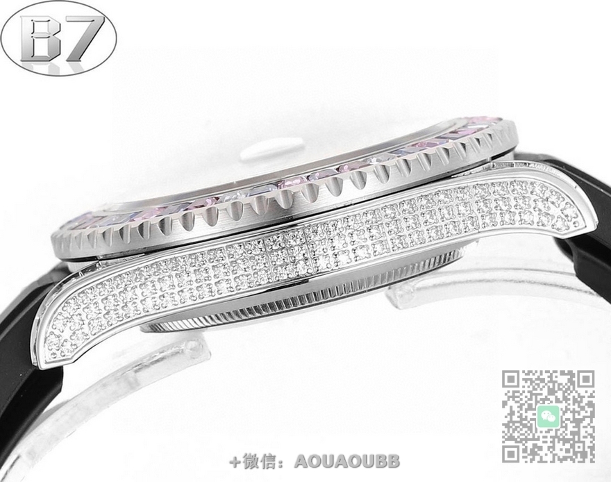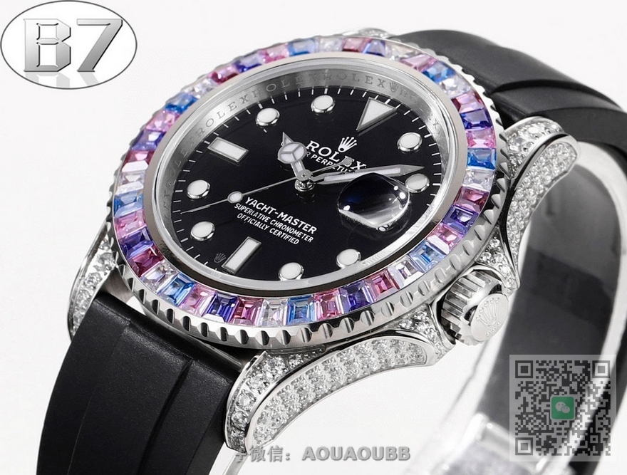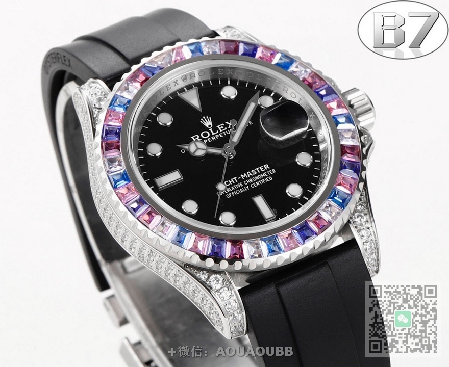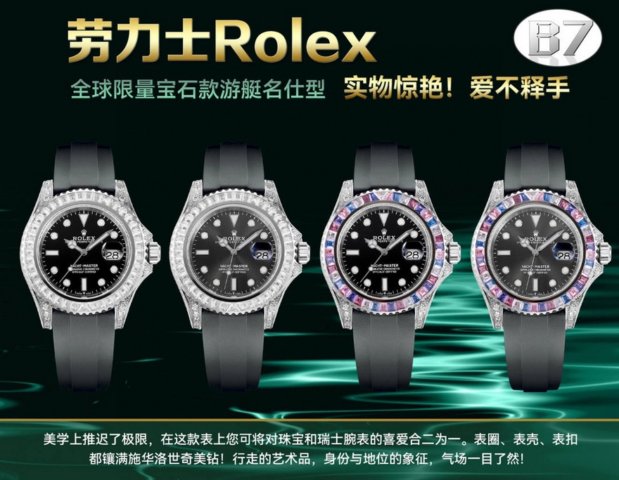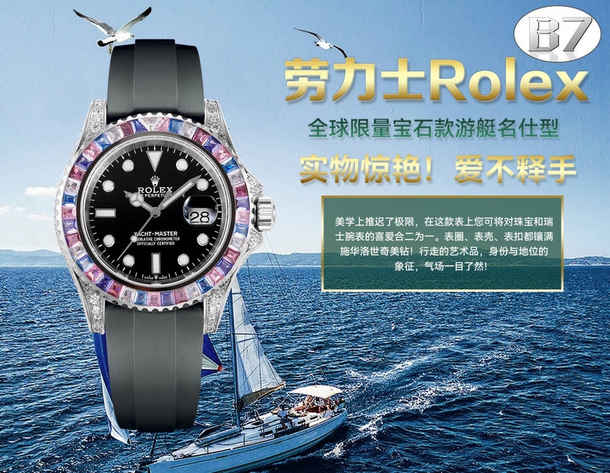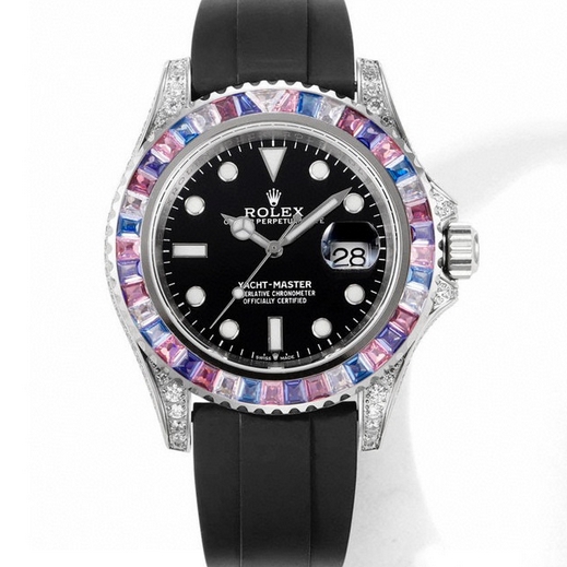 【品牌】劳力士【款式】男款【产品介绍】劳力士Rolex全球限量宝石款游艇名仕型,美学上推迟了极限,在这款表上您可将对珠宝和瑞士腕表的喜爱合二为一。表圈、表壳、表扣都镶满施华洛世奇美钻!行走的艺术品,身份与地位的象征,气场一目了然!实物惊艳!爱不释手️ 上手震撼尊贵非凡。您值得拥有!【尺寸】直径40mm【机芯】采用象征着劳力士的灵魂蓝游丝3135全自动一体机,性能极为稳定,复刻专柜正品机型【表壳】腕表尺寸40mm 每一细节做到一比一完美复刻。【表带】透气舒适橡胶表带,坚韧柔软舒适(另附赠一条胶表带)。【表扣】原装表扣满镶施华洛世奇美钻。【镜面】蓝宝石镜面。超强夜光字面,字面颜色更细腻做出了与正品一致的视觉效果!【防水】100米防水【配件】原装盒,说明书,质保卡,吊牌,香港机打发票【品质检测】保证所有手表实物拍摄,所见即所得 , 手表发货前都会有严格检查测试,确保您收到的手表无质量问题