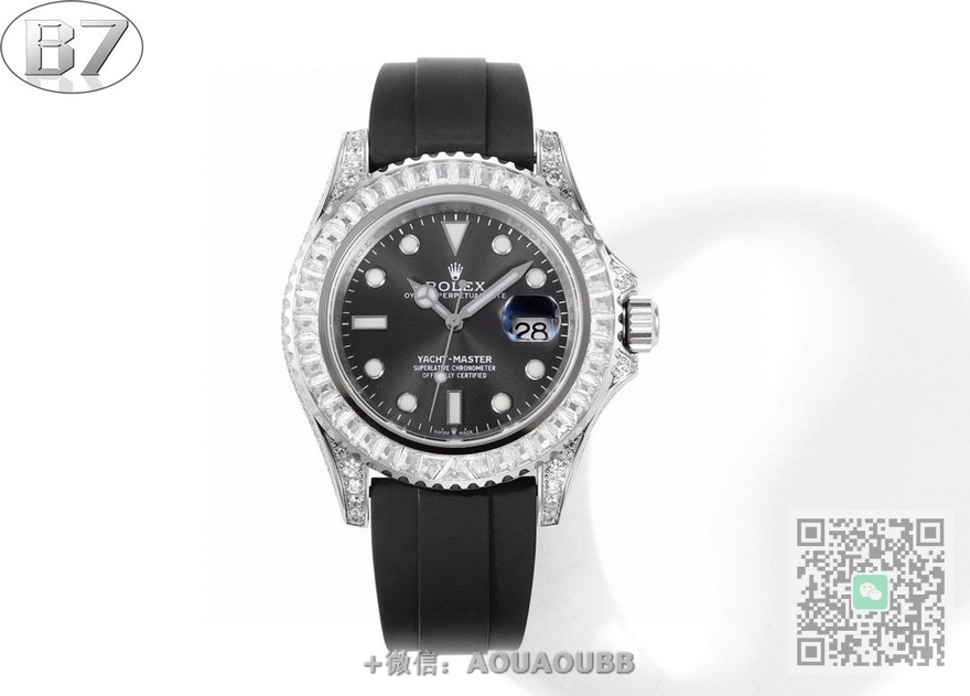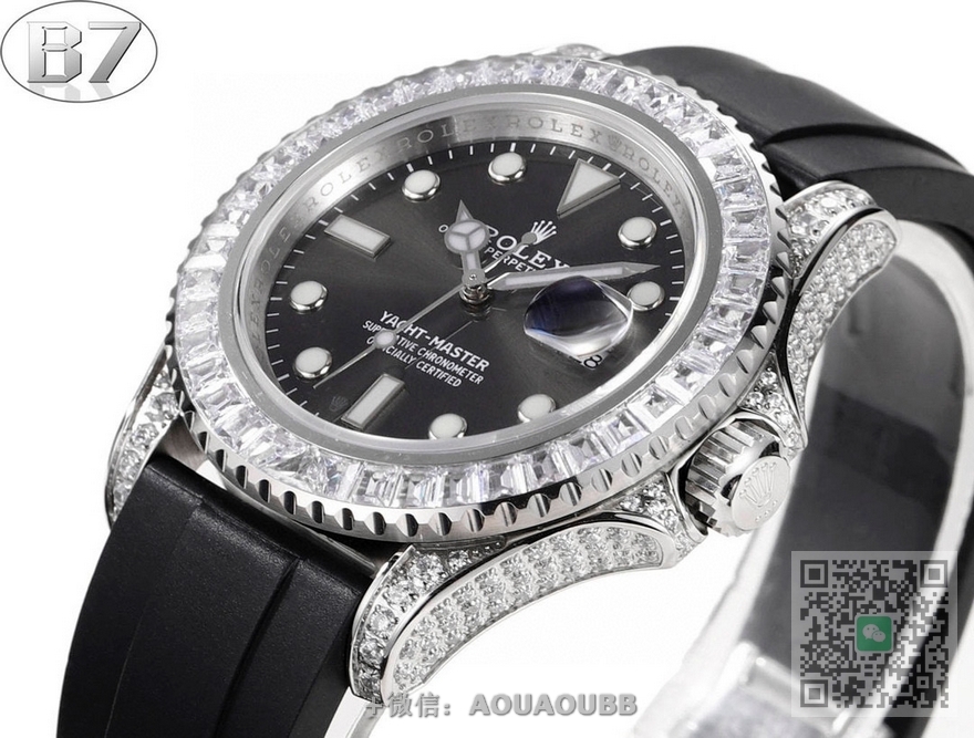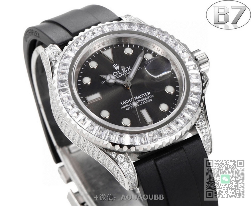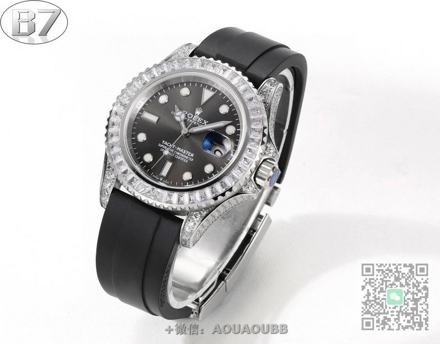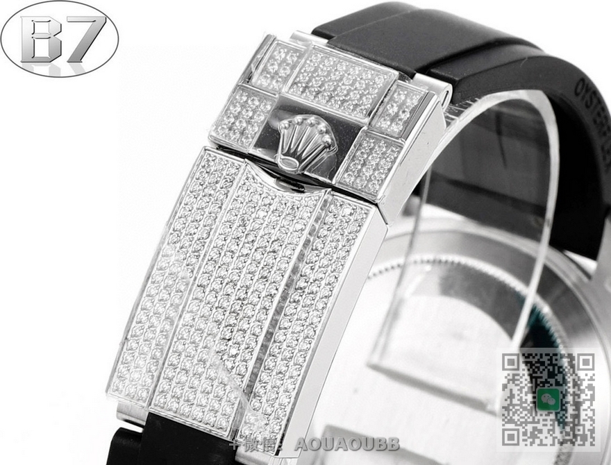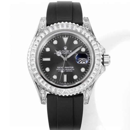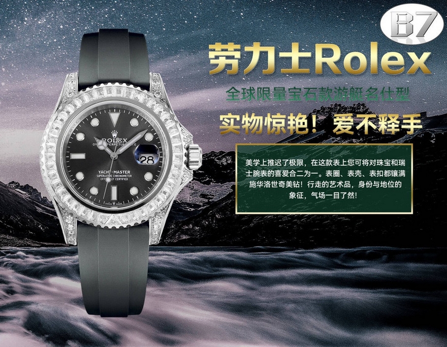 【品牌】劳力士【款式】男款【产品介绍】劳力士Rolex全球限量宝石款游艇名仕型,美学上推迟了极限,在这款表上您可将对珠宝和瑞士腕表的喜爱合二为一。表圈、表壳、表扣都镶满施华洛世奇美钻!行走的艺术品,身份与地位的象征,气场一目了然!实物惊艳!爱不释手️ 上手震撼尊贵非凡。您值得拥有!【尺寸】直径40mm【机芯】采用象征着劳力士的灵魂蓝游丝3135全自动一体机,性能极为稳定,复刻专柜正品机型【表壳】腕表尺寸40mm 每一细节做到一比一完美复刻。【表带】透气舒适橡胶表带,坚韧柔软舒适(另附赠一条胶表带)。【表扣】原装表扣满镶施华洛世奇美钻。【镜面】蓝宝石镜面。超强夜光字面,字面颜色更细腻做出了与正品一致的视觉效果!【防水】100米防水【配件】原装盒,说明书,质保卡,吊牌,香港机打发票【品质检测】保证所有手表实物拍摄,所见即所得 , 手表发货前都会有严格检查测试,确保您收到的手表无质量问题