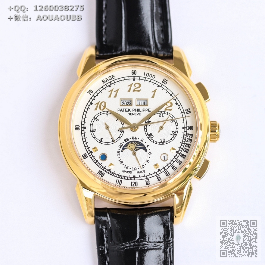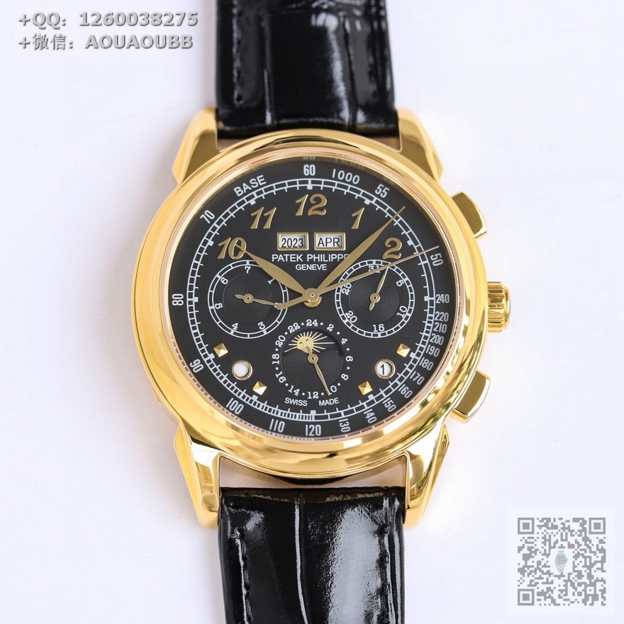 【品牌】百达翡丽【产品介绍】 V4版”扣子”升级原装复刻开模,百达.翡丽超级复杂功能计时系列!用心之作,细节方面:团队历时两年多精心设计,不计成本,敢为人先,力求完美,克服重重难关,突破多层技术瓶颈,机芯型号为CH 29-535 升级版,质量稳定!尺寸41毫米,厚度11毫米! 功能12点位置下面年份月份显示,3点位置日历显示9点位置星期显示,6点位置24小时月相显示,真正多功能男表.表壳为全精钢镀纳米铂金表技术,圈口点缀南非钻,更彰显高贵大气,表带搭配意大利头层小牛皮!更显大气上档次!你值得拥有!请认准独家品质。【款式】男款【尺寸】41mmx11mm【表带】意大利牛皮表带【镜面】蓝宝石镜面【机芯】顶级CH29-535升级版机芯【防水】50米【配件】原装盒,说明书,质保卡,吊牌,香港机打发票【品质检测】保证所有手表实物拍摄,所见即所得 , 手表发货前都会有严格检查测试,确保您收到的手表无质量问题