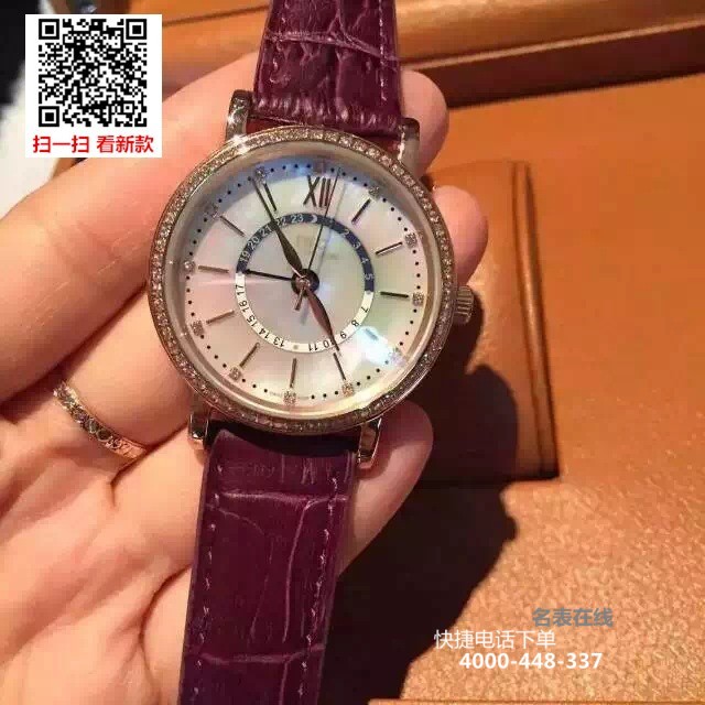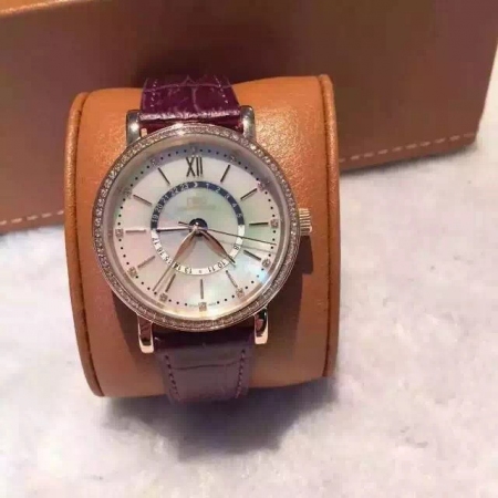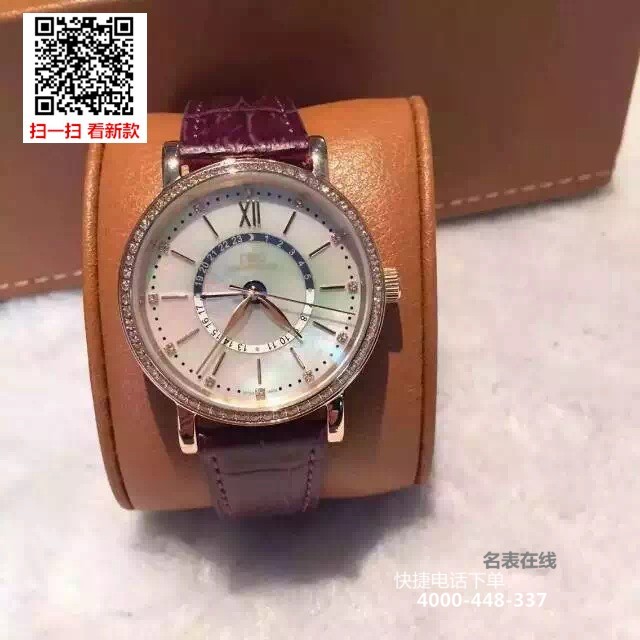 {品牌}:万国{款式}:女款/中性款{尺寸}:直径约37mm;厚度约10mm{表带}:真皮表带{镜面}:蓝宝石抗划镜面{机芯}:瑞士机芯{防水}:50米{配件}:原装盒,说明书,质保卡,吊牌,香港机打发票