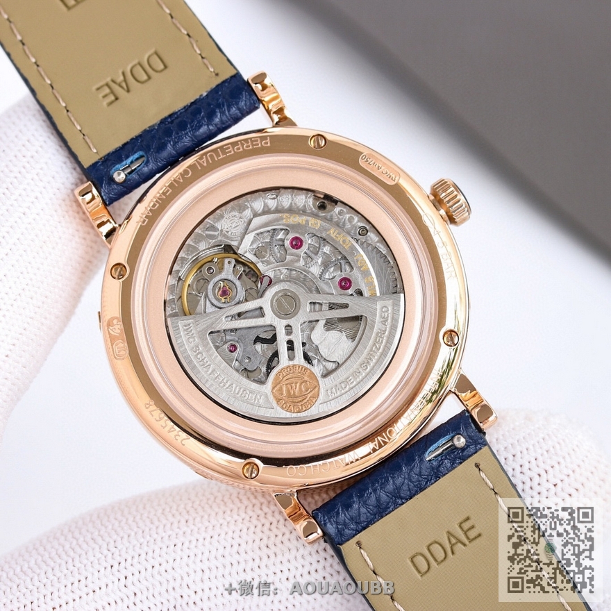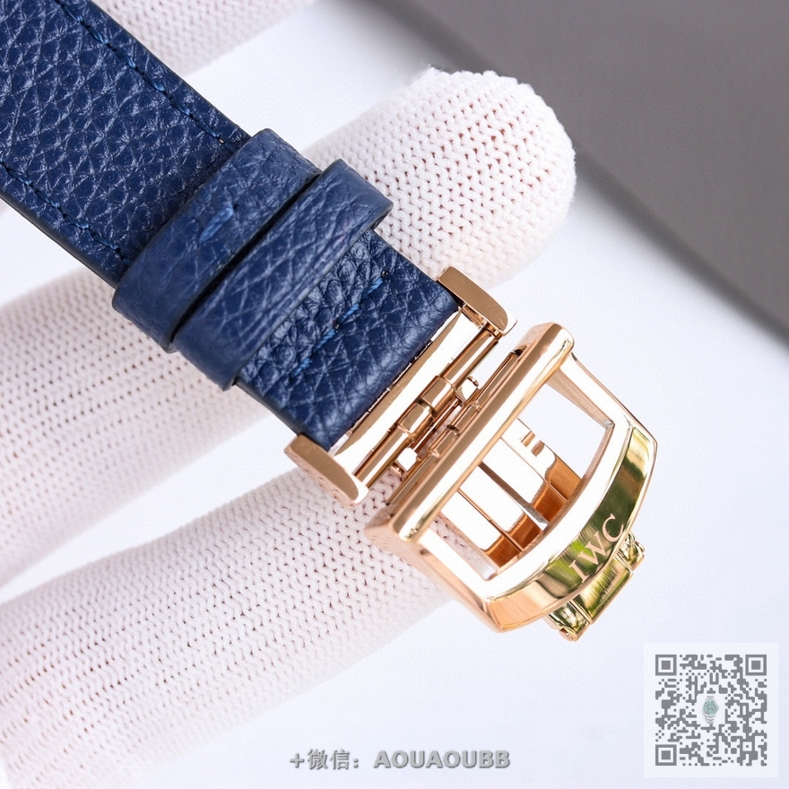 4️.【表带表扣】该款式定制进口的小牛皮,质感佳,佩戴舒适!表扣采用原装折叠扣,刻有“IWC”经典标志,更显示出这款腕表的华贵气质!