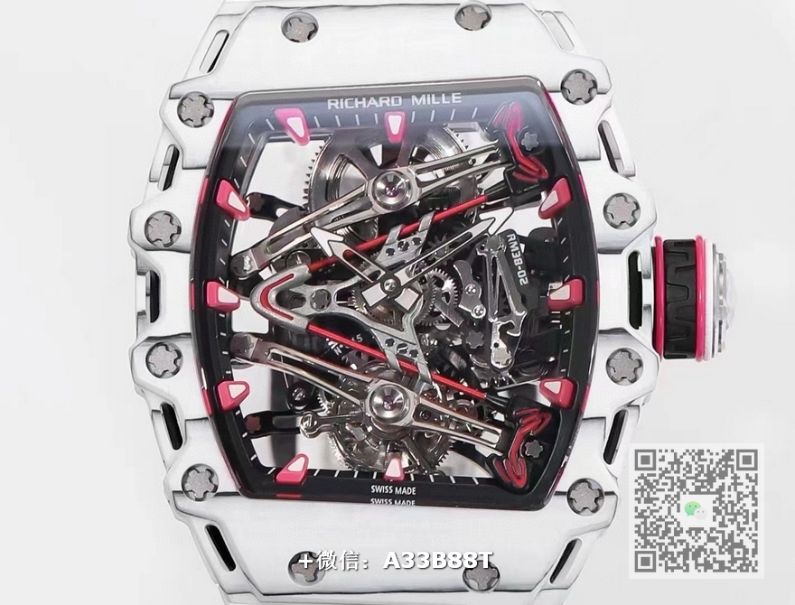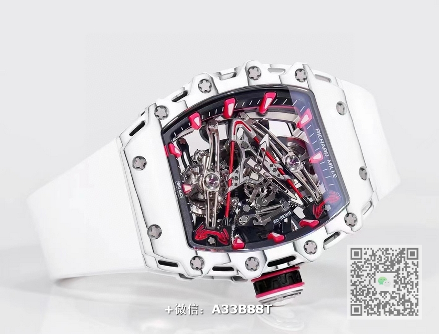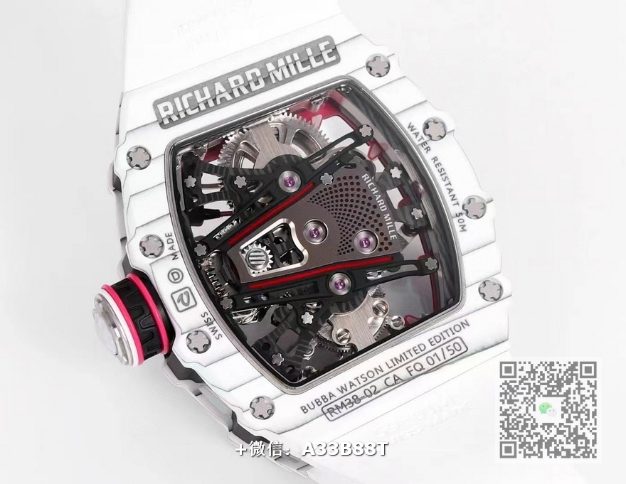 市场天花板 理查米尔男士系列RM38-02粉色主题镂空陀飞轮腕表 (陀飞轮腕表与高尔夫职业球手 Bubba Watson 合作设计)