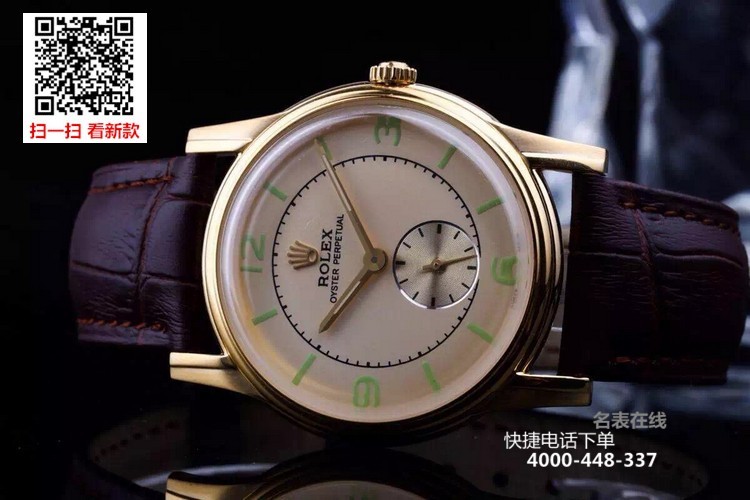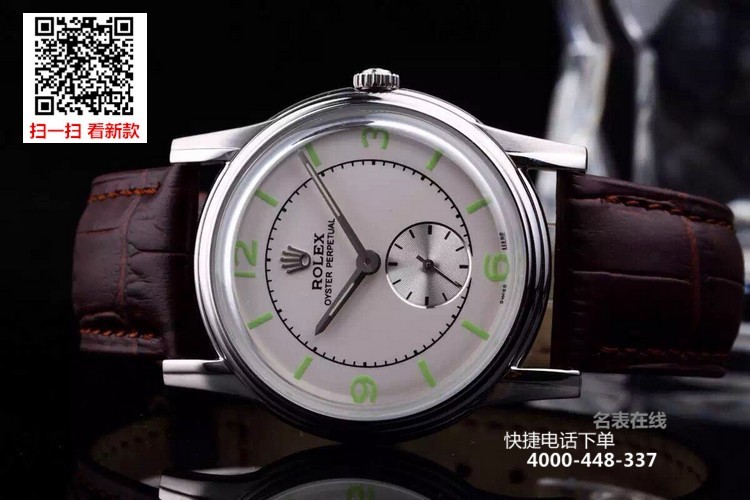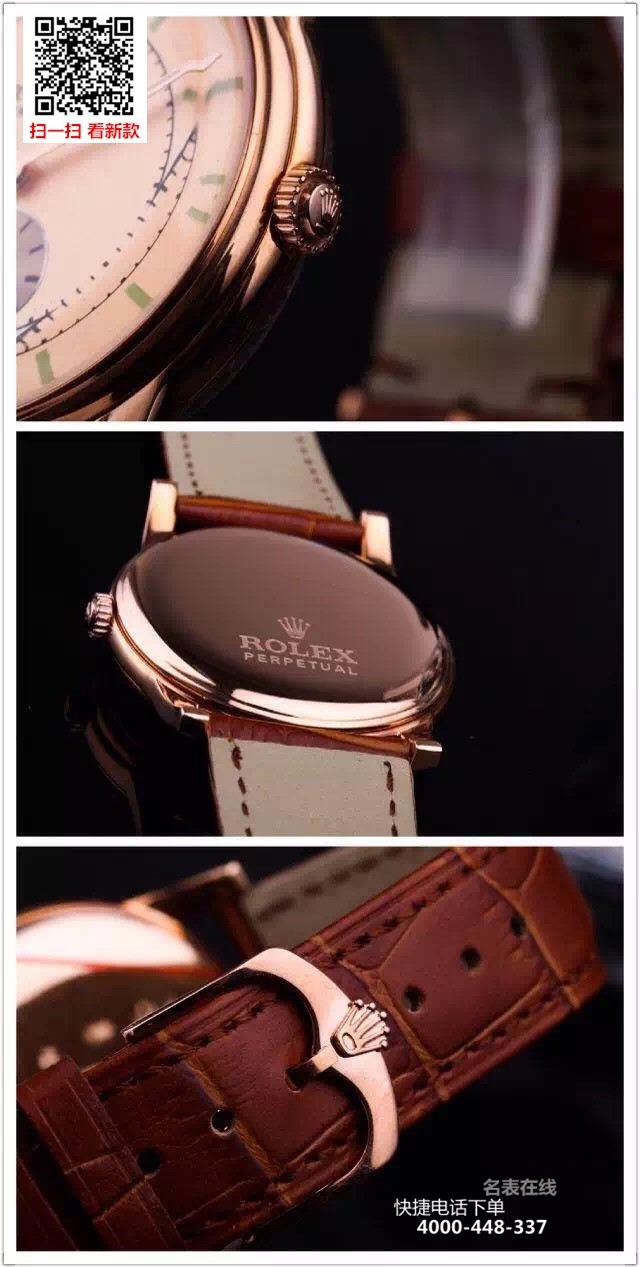 {品牌}:劳力士{款式}:男款{尺寸}:直径约39mm 厚度约10mm{表带}:真皮表带{镜面}:蓝宝石抗划镜面{机芯}:瑞士石英机芯{防水}:50米{配件}:原装盒,说明书,质保卡,吊牌,香港机打发票