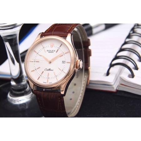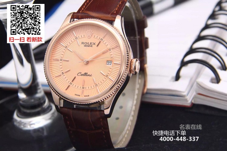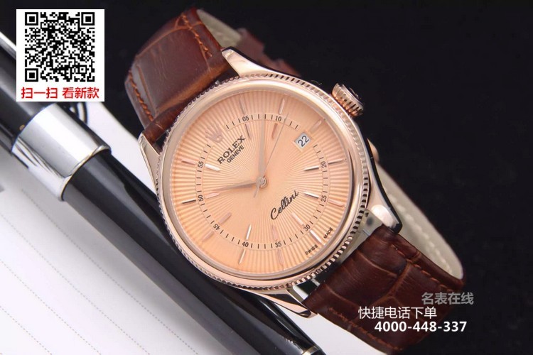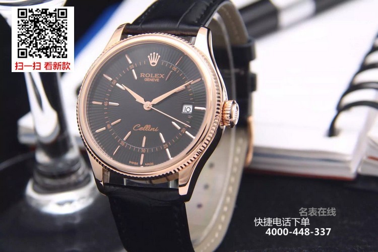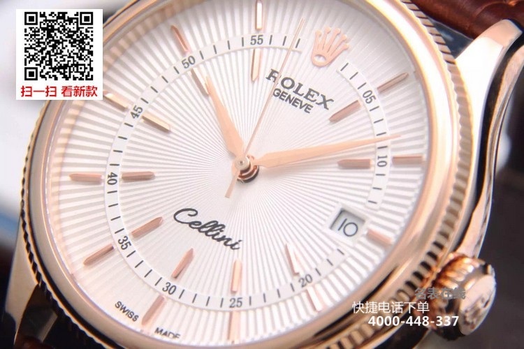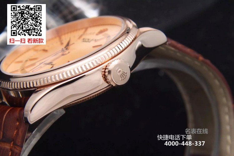 {品牌}:劳力士{款式}:男款{尺寸}:直径约39mm 厚度约11mm{表带}:真皮表带{镜面}:蓝宝石抗划镜面{机芯}:瑞士ETA全自动机械机芯{防水}:50米{配件}:原装盒,说明书,质保卡,吊牌,香港机打发票
