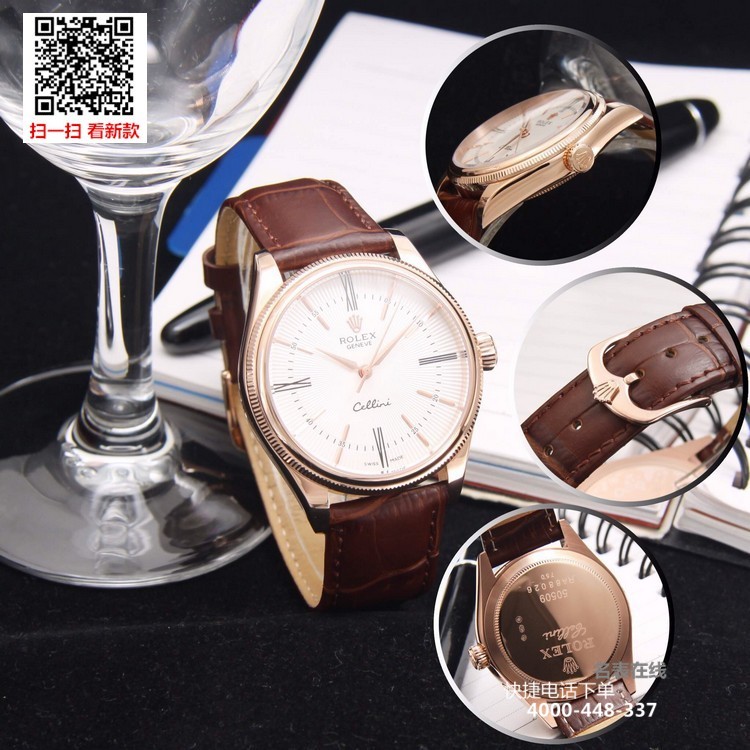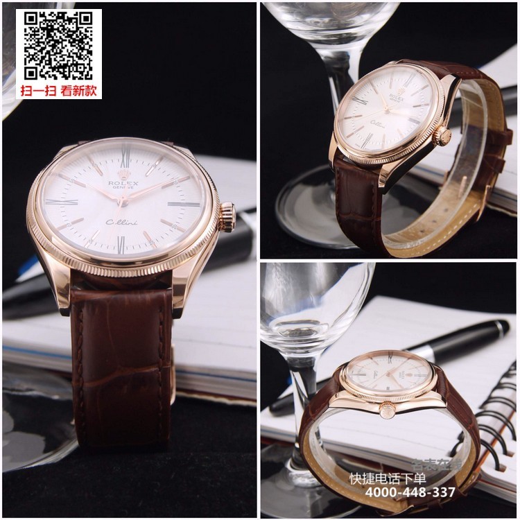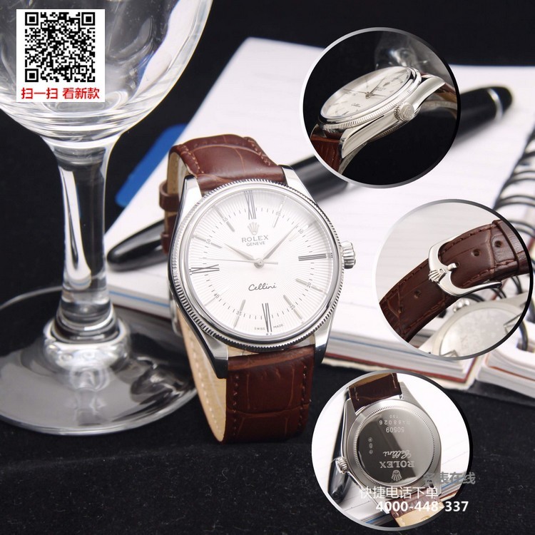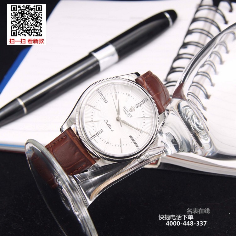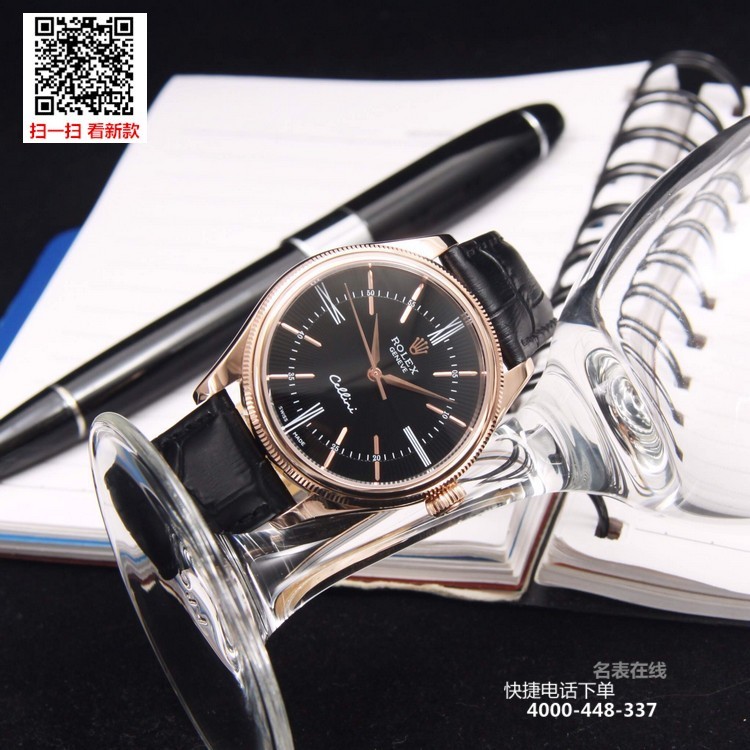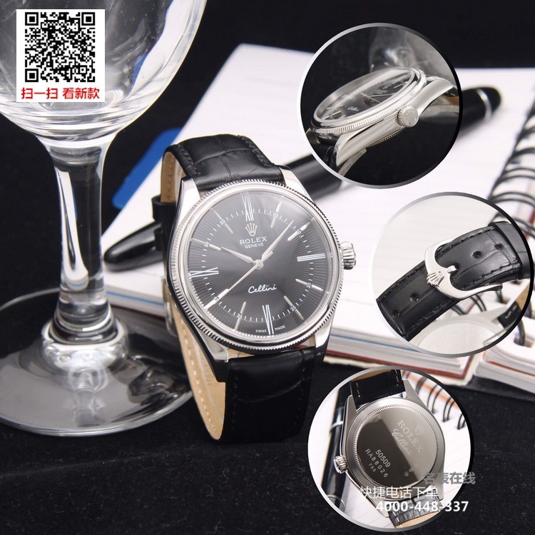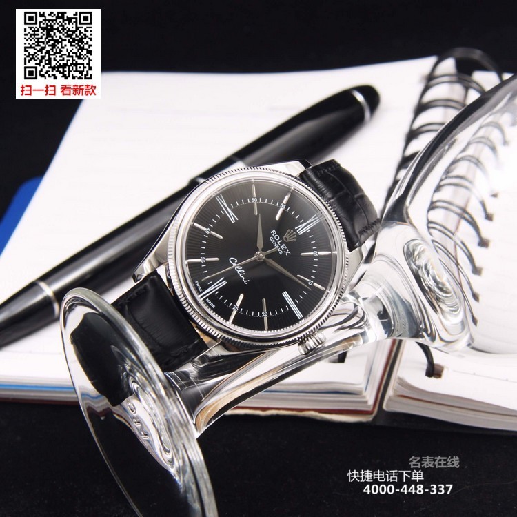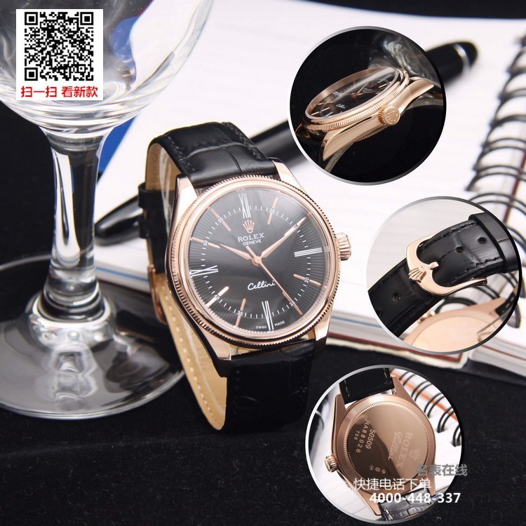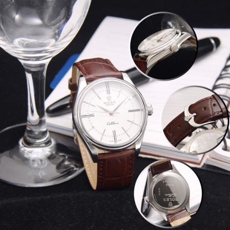 {品牌}:劳力士{款式}:男款{尺寸}:直径约39mm 厚度约11mm{表带}:真皮表带{镜面}:蓝宝石抗划镜面{机芯}:瑞士ETA全自动机械机芯{防水}:50米{配件}:原装盒,说明书,质保卡,吊牌,香港机打发票