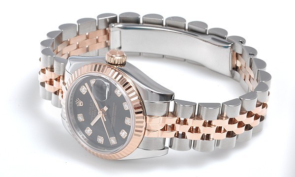 {品牌}:劳力士{款式}:女款{尺寸}:直径约28mmm{表带}:18K间玫瑰金精钢表带{镜面}:蓝宝石抗划镜面{机芯}:瑞士ETA全自动机械机芯{防水}:100米{配件}:原装盒,说明书,质保卡,吊牌,香港机打发票