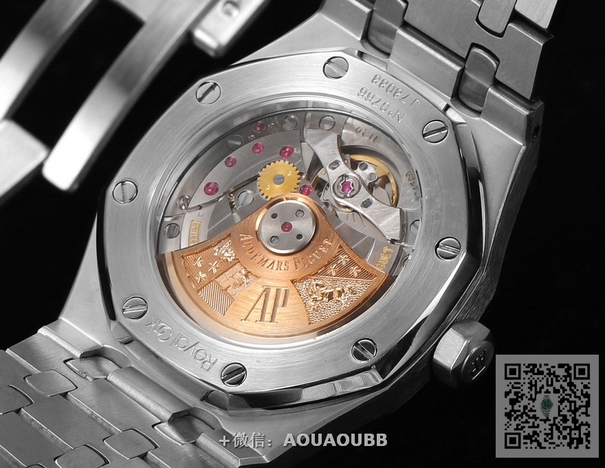 4.自动陀的与原装致敬,是市面唯一做到颜色于原装一致的版本(市面一般版本均偏红)其上的ap族徽雕刻独一无二。5.采用9015进口机芯改爱彼CAL3120一体机芯更稳定,更优秀,更真实。