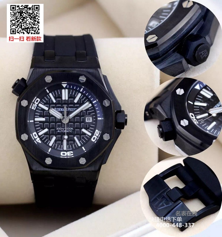 【品牌】爱彼【款式】男款【尺寸】直径约42mm【产品介绍】极致工艺 重塑爆款GD品控,2022重磅新品爱彼皇家橡树离岸型男士运动腕表,GD一如既往的品质标准,搭配蓝宝石玻璃,全新西铁城机芯,深度防水,内影圈可调节旋转计时功能,完美同步原装细节!【机芯】GD出品仍然秉承高性价比,低廉实惠的原则,采用全新原装日本进口西铁城8215自动机械机芯零返修,并修正原装机芯陀片【表壳】表壳采用316精钢拉沙洁白无瑕线条清晰流畅,11字位把头同步原装可调节旋转内影圈计时功能同级独家工艺,八角形圈口配八颗螺钉镶嵌表圈璀璨夺目,尺寸42mm/12mm【字面】采用荧光粉填充大型格纹字面,阳光下色泽明亮,对比度鲜明,刻度配以独家夜光填充,吸光快持久度强【表链】大厂同步进口橡胶表带搭配原装大针扣【防水】50米【配件】原装盒,说明书,质保卡,吊牌,香港机打发票【品质检测】保证所有手表实物拍摄,所见即所得 , 手表发货前都会有严格检查测试,确保您收到的手表无质量问题【售后服务】7天包退,十五天包换,三年保修(网站右边是我们微信客服,建议扫描添加,有疑问售后可以方便联系)