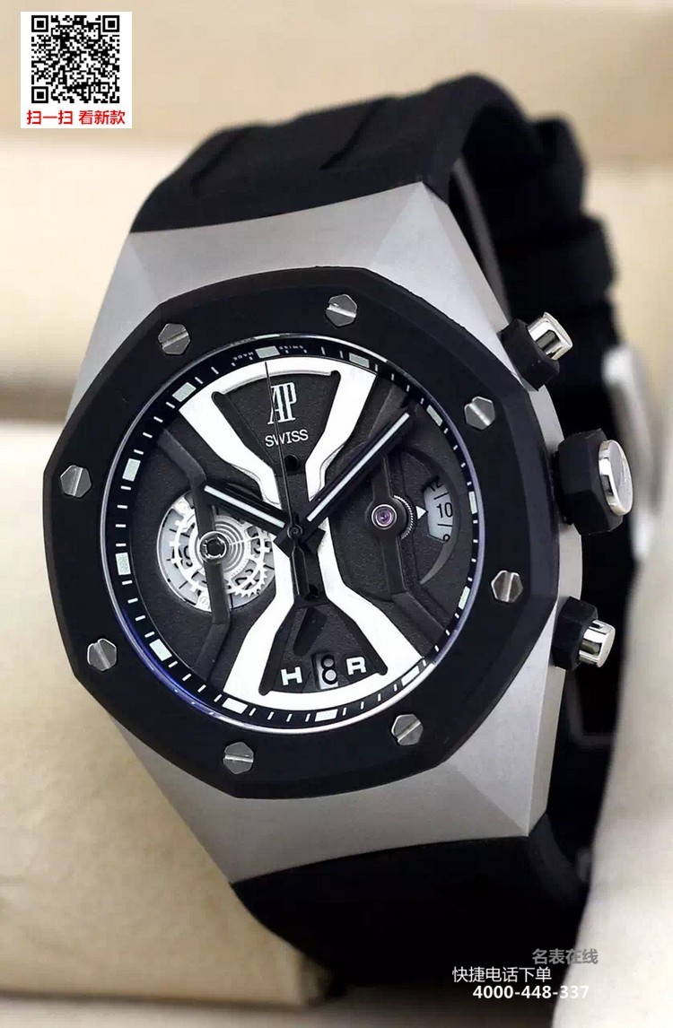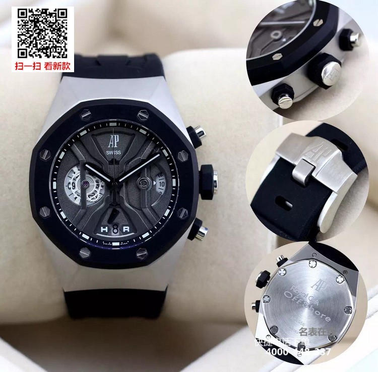 {品牌}:爱彼{款式}:男款{尺寸}:表壳直径约42mm ,厚度约13.5mm{表带}:天然橡胶表带{镜面}:蓝宝石抗划镜面{机芯}:瑞士石英机芯{防水}:300米{配件}:原装盒,说明书,质保卡,吊牌,香港机打发票