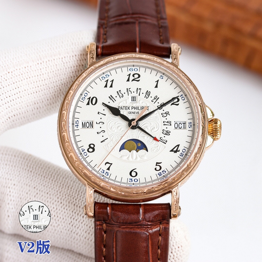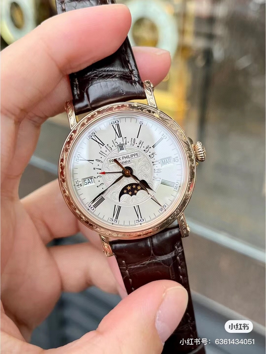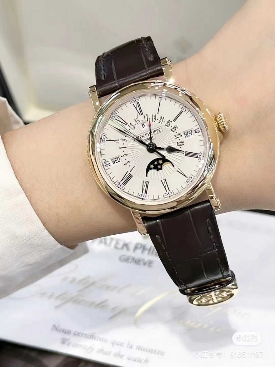 【品牌】百达翡丽【产品介绍】PPF厂V2版来了,再次升级,火爆全网,匠”芯“出品 年度最佳典藏之作——百达.翡丽古典超级复杂多功能5159万年历系列腕表,儒雅而至!️【精彩细节与优点】此腕表尺寸38mm合理的尺寸和表耳设计又能让它适合大众人士配戴,无论你是大手腕还是小手腕佩戴起来都毫无压力,举手投足之间,露出一半在袖口一外,成功人士,商务配装,此腕表绝对给足你面子与信心,上手的感觉是舒适的佩戴感受和一枚小金表的分量感,你都能体会到,拥有它才是真正的人生赢家,这表值了1.表壳打磨:为了追求正品温润如玉的效果,设计制表师精磨细造,慢工出细活。2.冲压盖与壳体的衔接机制,有媲美带正品一样的清脆手感,冲压后盖更高的提高防水性能。3.刻度和指针,采用最新的贵金属电镀工艺处理,效果更上一层楼。4.“锅盖型”微凸蓝宝表镜,版型与正品一致,效果通透,辨时清晰。5.贵金属钢印立体规范,清晰生动!️【引领一体机时代】采用定制版Cal.324一体机——更薄,更稳,更像。最重要的是仿真度直线上升了。️【表带】经典意大利小牛皮表带,纹路清晰,质感好。搭配圈市面最顶级的百达翡丽灯笼表扣,通用原装无压力。让它更加具有正装百达翡利的设计元素!Factory儒雅持成,永恒经典,低调完美,表中绅士!欢迎您的品鉴!每一个表配送一根专用调表针,为的就是让广大表友信赖,高端产品,值得拥有【款式】男款【尺寸】直径38mm【表带】意大利牛皮表带【镜面】蓝宝石镜面【机芯】cal.324一体机芯【防水】100米【配件】原装盒,说明书,质保卡,吊牌,香港机打发票【品质检测】保证所有手表实物拍摄,所见即所得 , 手表发货前都会有严格检查测试,确保您收到的手表无质量问题