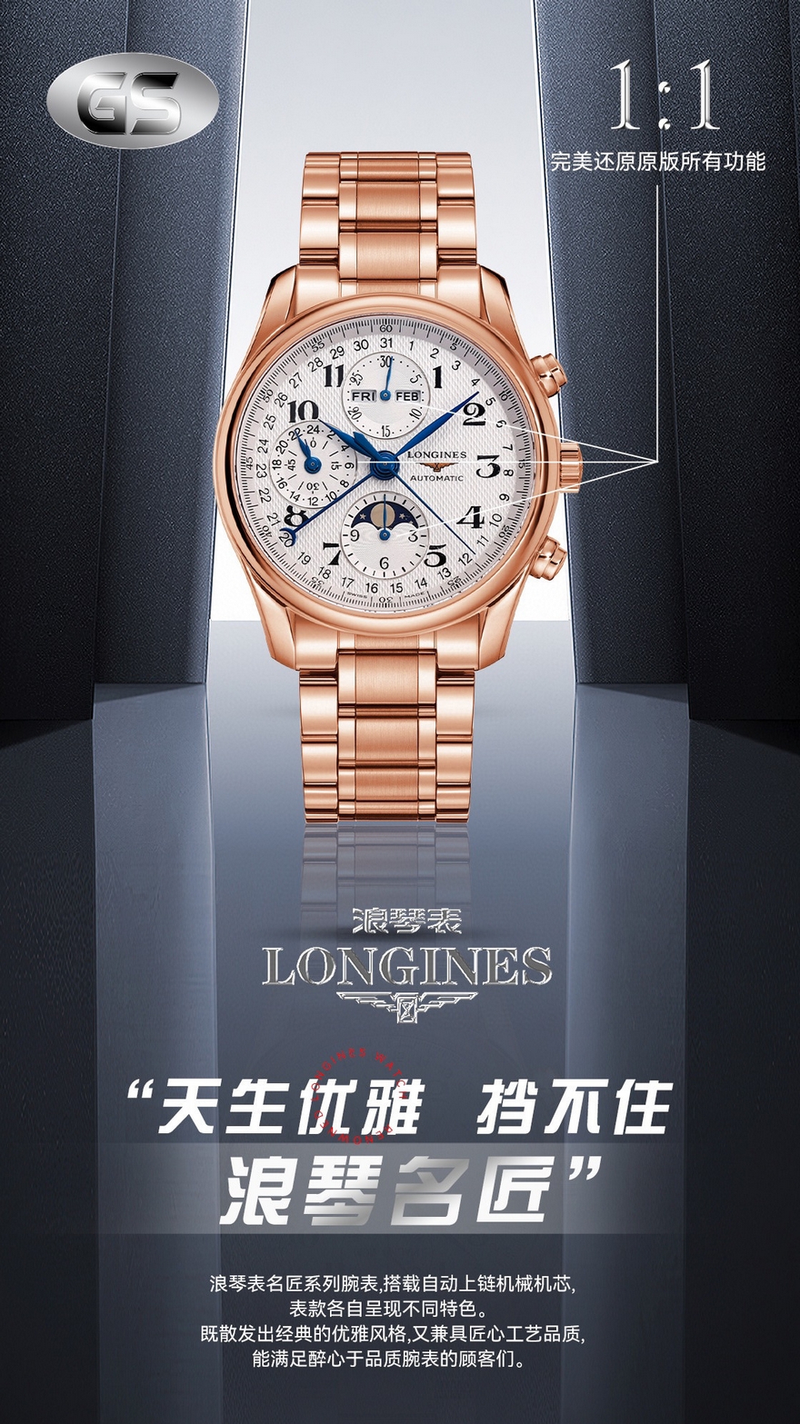 【品牌】浪琴【产品介绍】GS Factory2021再攀复刻高峰V2升级版 GS精心打造浪.琴名匠月相2018最新款L2.773.4.78.6腕表——万千精妙,汇于一盘,布局精巧,观感绝佳!表壳腕表尺寸42毫米,厚度14.5毫米!表壳由品质出众的316L精钢精磨细造,光泽明亮,呈现原装柔和优美的线条。直立式表耳与表壳一体成型,佩戴贴手,极为舒适!机芯采用顶级7751机芯改原装L.687型机芯,所有功能同步原版。【精彩细节】1.机芯功能与原装吻合——完美融合月相、全历、二十四小时以及计时等多种实用功能!2.八只高温淬火锻造而成的蓝钢指针,深邃有致,熠熠生辉。3.市场独家——自动陀与原装同步,升级官方最新版本GS匠心之作!GS Factory2021力作 欢迎各路表友品鉴!【款式】男款【尺寸】直径42mm;厚度14.5mm【表带】精钢表带【镜面】蓝宝石镜面【机芯】7751改正品L687机芯【防水】50米【配件】原装盒,说明书,质保卡,吊牌,香港机打发票【品质检测】保证所有手表实物拍摄,所见即所得 , 手表发货前都会有严格检查测试,确保您收到的手表无质量问题
