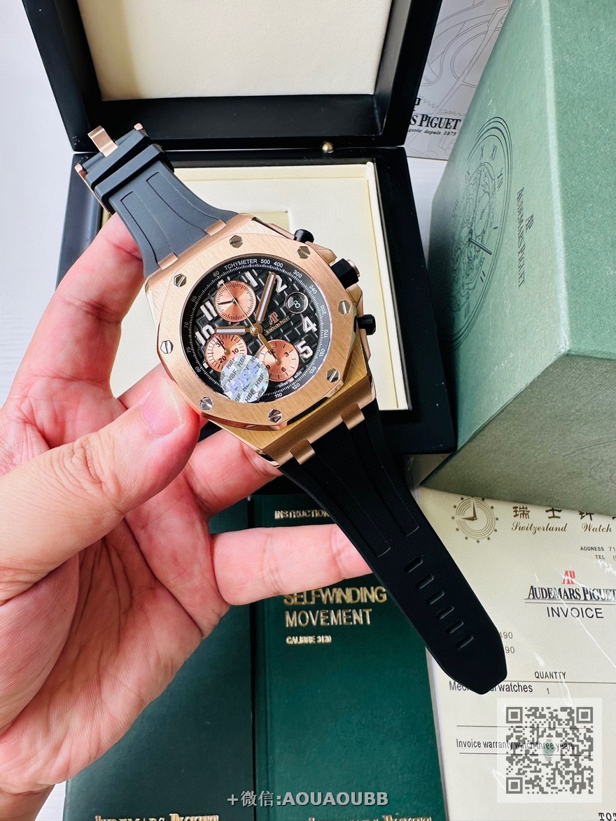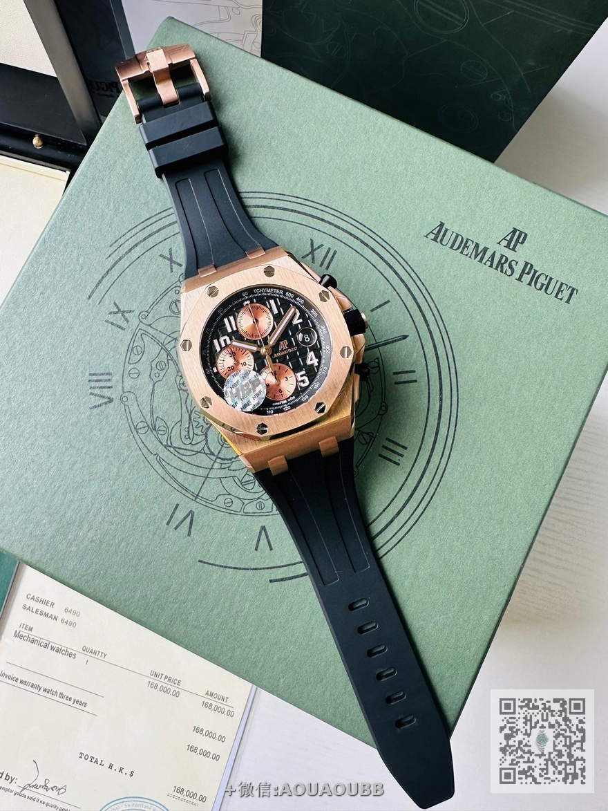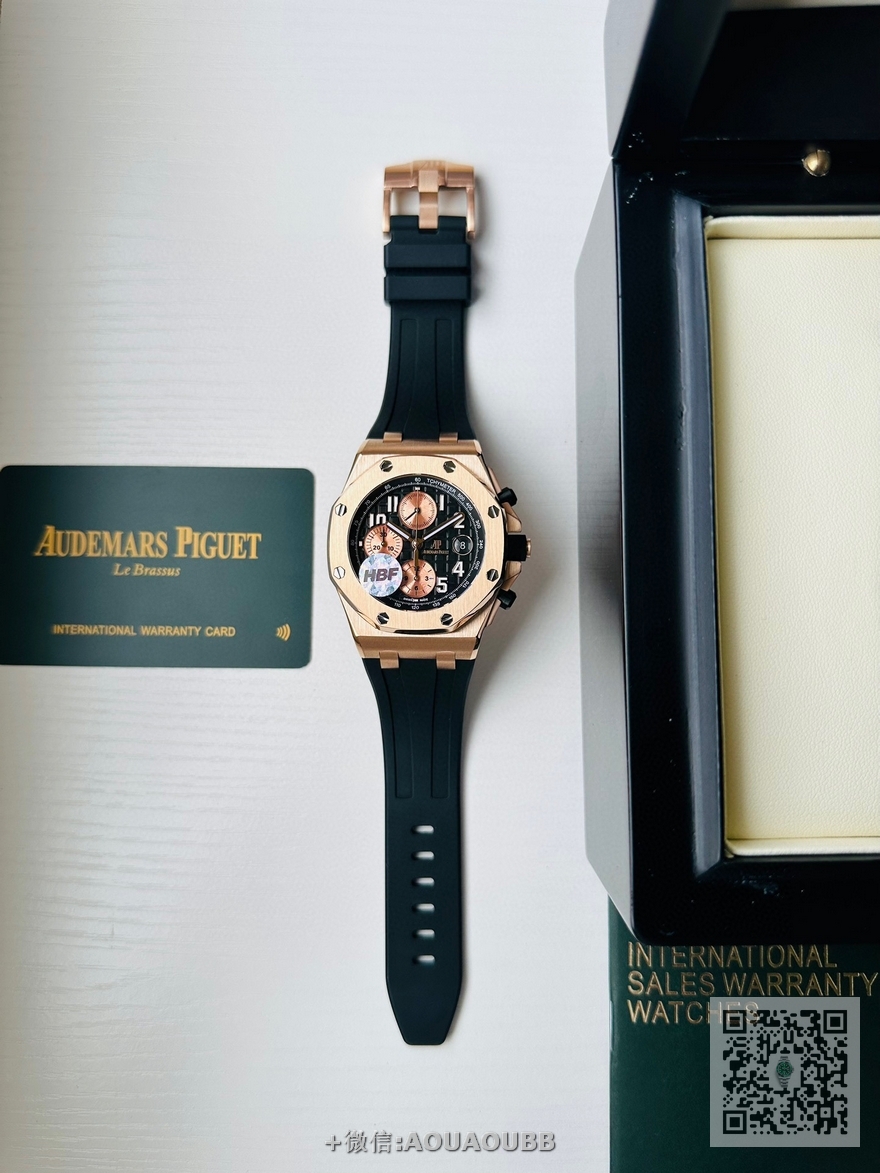 【品牌】爱彼【产品介绍】12位秒AP HBF FACTORY ️️爱彼 皇家橡树离岸型系列26238:封顶之作 杜绝一眼假”在JF厂原有的基础上 潜心研发 突破壁垒 “打破原装封锁技术,同步原装独家计时码表款可松动头粒”使上手最大程度贴合手腕,大大提高了佩戴的舒适 同时也杜绝一眼假的尴尬处境。HBF厂真正做到从每一个喜欢手表的表友角度考虑 2.采用最新CNC级别的打磨技术,将整个表壳的个个角度完美处理,3.每颗六角螺丝都与表框处于同一平面上,不接受一丝一毫的凸显与凹陷,真正诠释了何为顶级复刻艺术 4.表盘以爱彼经典的大格纹为背景,层次分明的方格排列,经过完美打磨,将匠人的工艺体现的淋漓尽致 5.镜面采用双面蓝宝石镜片,天然氟橡胶皮带,6.机芯采用原装3126的计时机芯,十二位的小秒,6点钟位和九点位的12小时计时与30分钟计时,完美的还原了原版的所有功能,每块手表都经过人工QC确保机芯的稳定性,真正做到无可挑剔【款式】男款【尺寸】直径42mm【表带】橡胶表带【镜面】蓝宝石镜面【机芯】7750改品cal.3126机芯【防水】50米【配件】原装盒,说明书,质保卡,吊牌,香港机打发票【品质检测】保证所有手表实物拍摄,所见即所得 , 手表发货前都会有严格检查测试,确保您收到的手表无质量问题